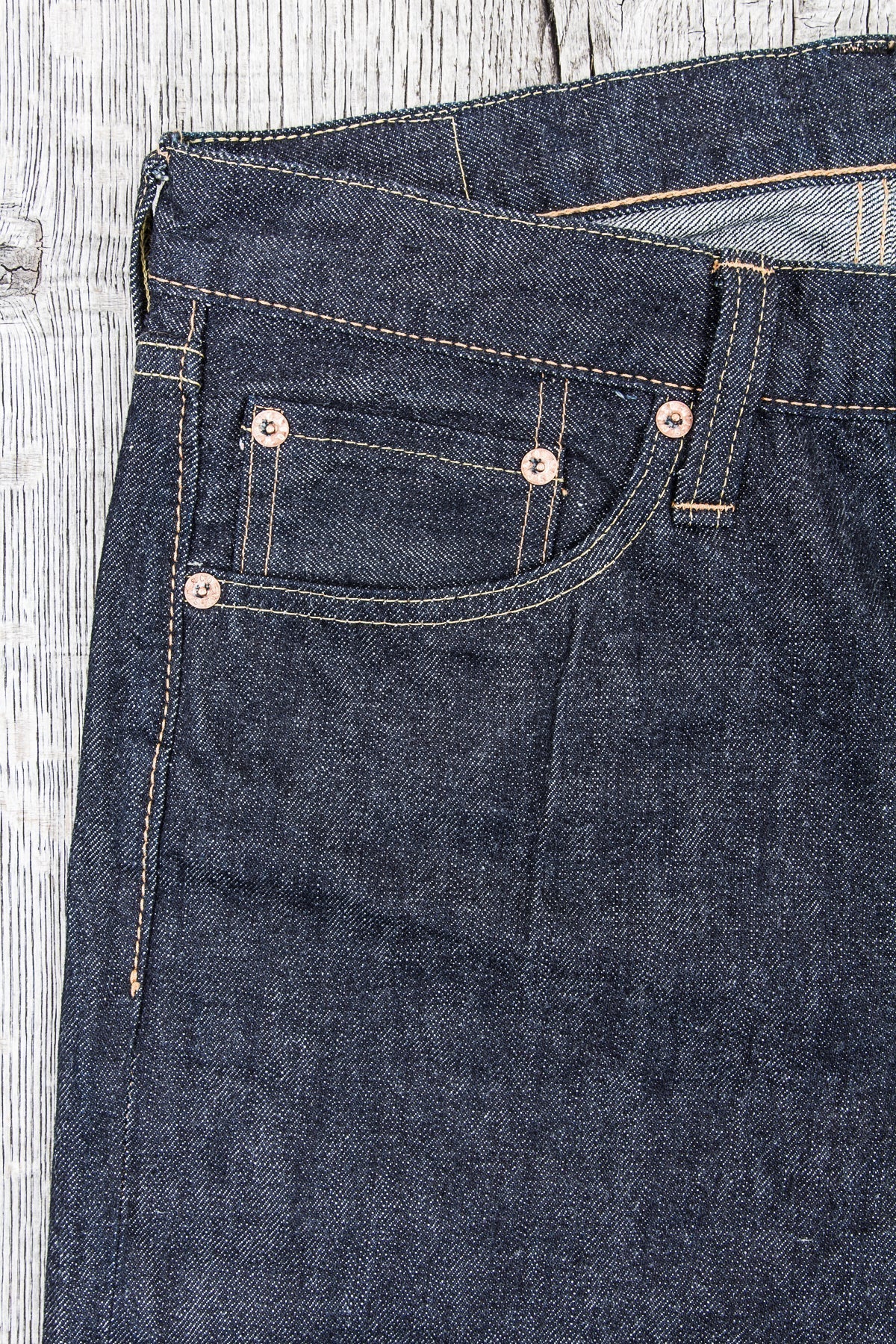 This fit is called 2014 and it's Sugar Cane's way of creating a pair of contemporary jeans inspired by the history of denim. The fabric and the construction is made in the same way as jeans were made in the middle of the last century, but the fit is intended to be worn by those who prefer a slim, yet straight silhouette and a lower waist.