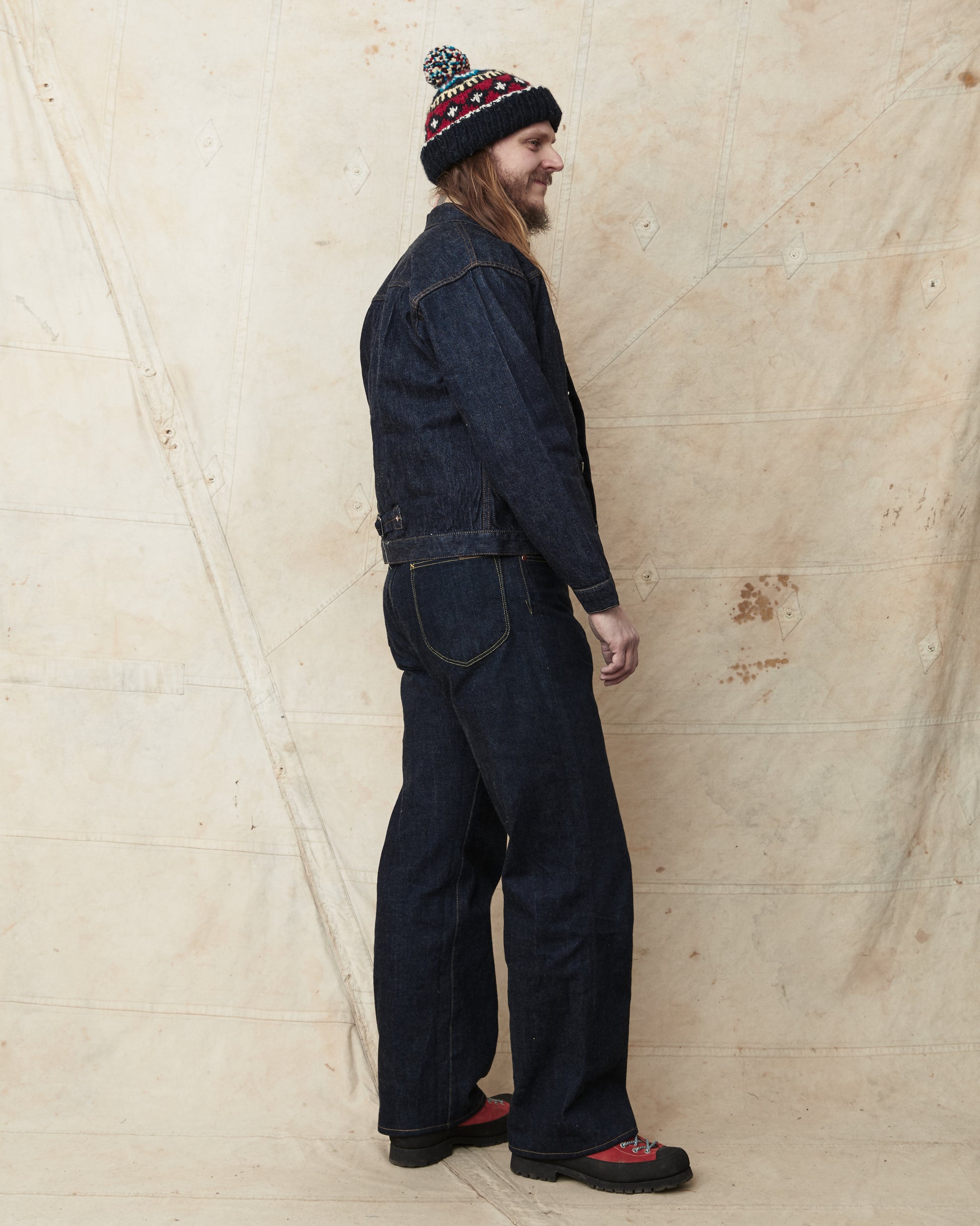 The fit stays true to the original 1930's cut, boxy and short. Just how we like it! The fabric used is a 13 oz Japanese selvedge denim that has been pre-washed so that the jacket will be soft to wear from the start and it won't shrink when washed for the first time.