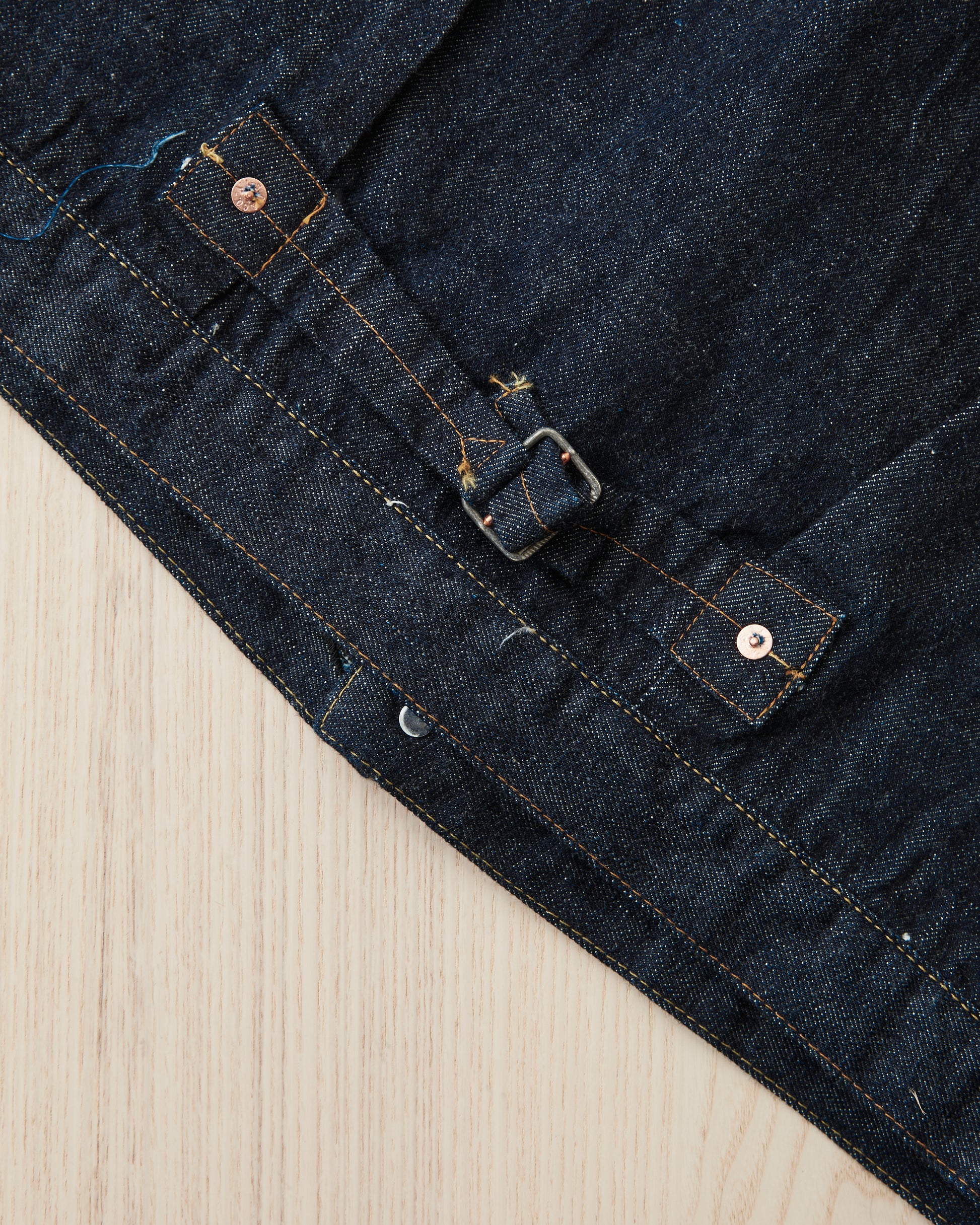 Here's Sugar Cane's version of one of the most iconic denim jackets ever made! The type 1 jacket inspired by the one made by Levis back in 1936 a simple design has proven to stand the test of time. A traditional denim work jacket with a pleated front and a square-shaped fit, "chinch" or "buckle back" at the lower back that can be used to adjust the width of the jacket.