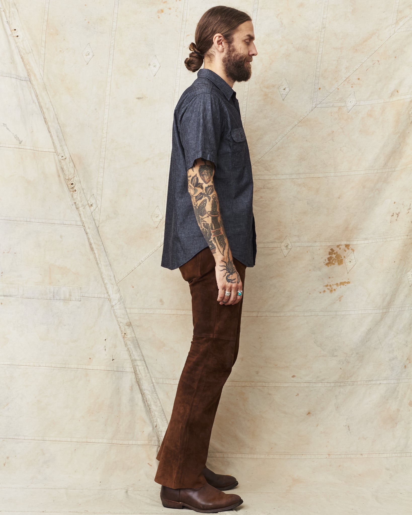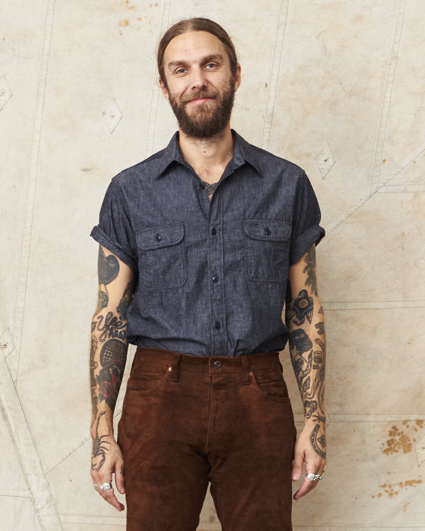 This is Sugar Cane's version of a short sleeved classic work shirt, made in a beautiful chambray fabric that will age to perfection when worn and washed for a long time.
