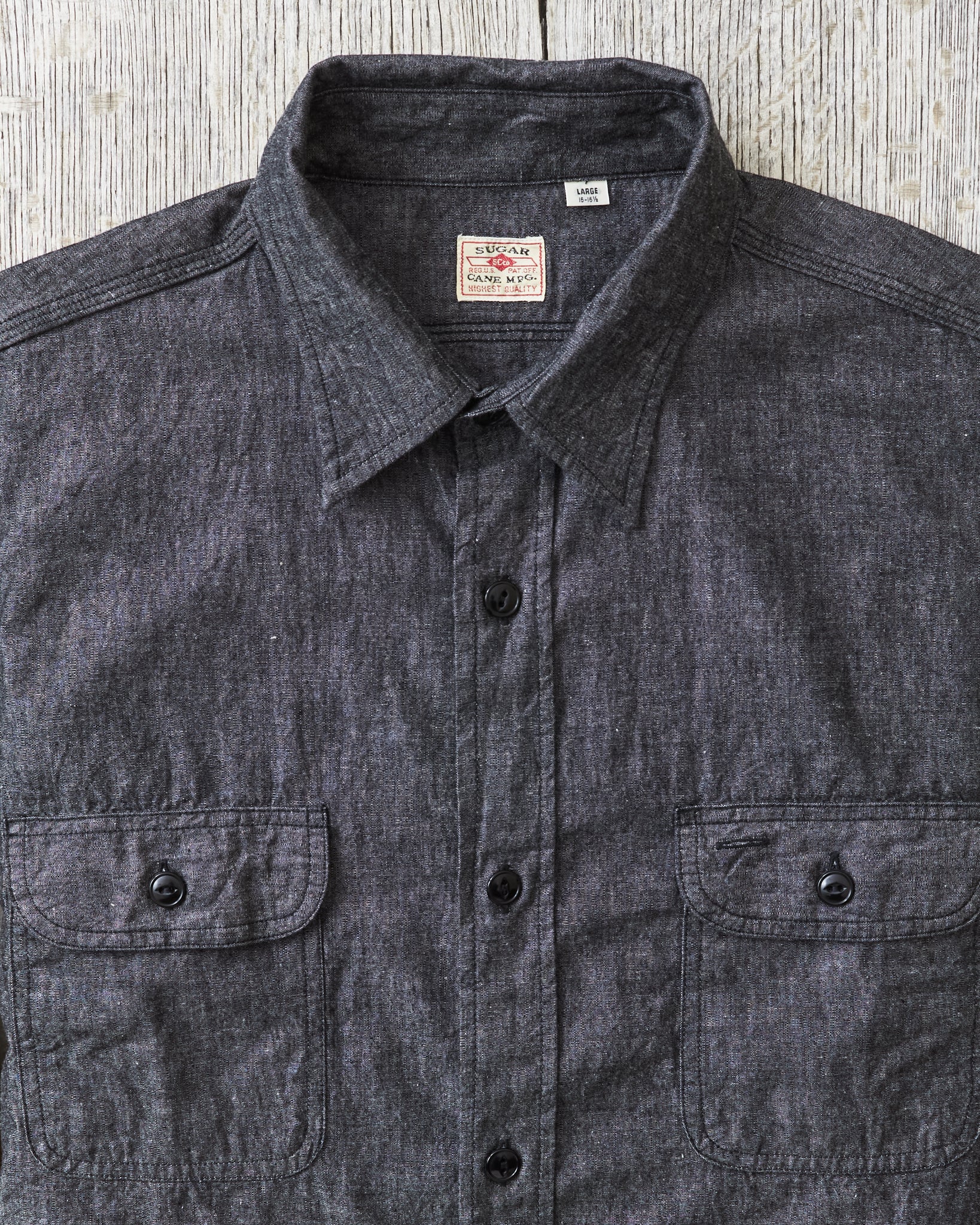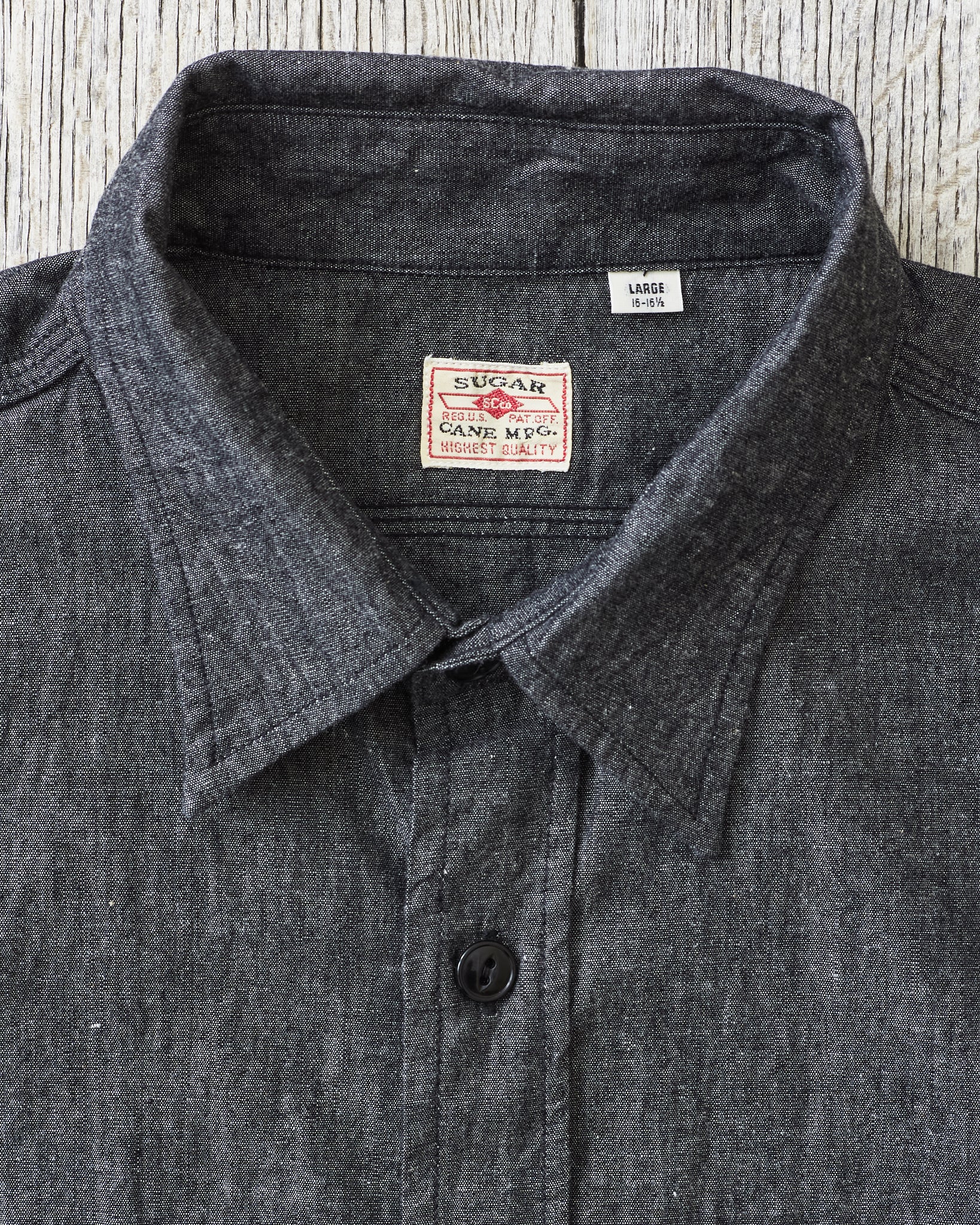 - Sugar Cane & Co. Short Sleeve Black Chambray Work Shirt