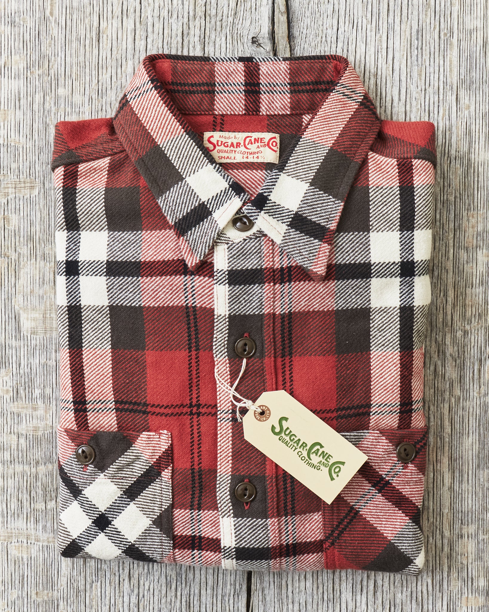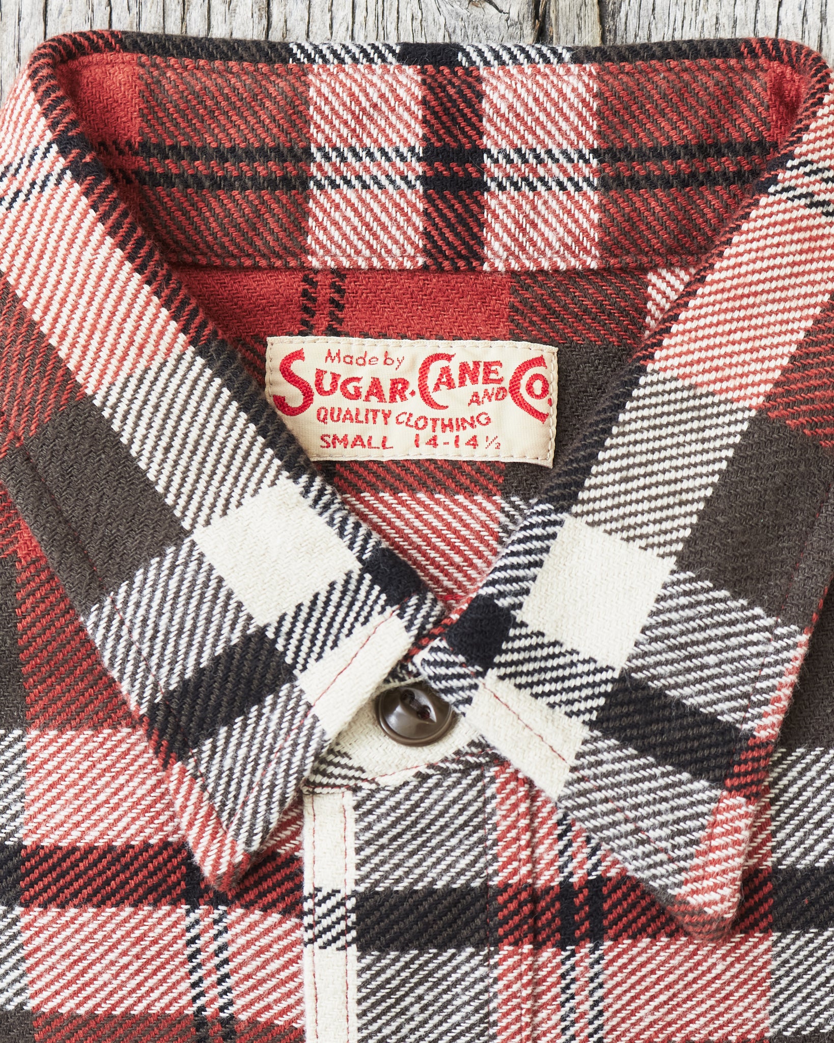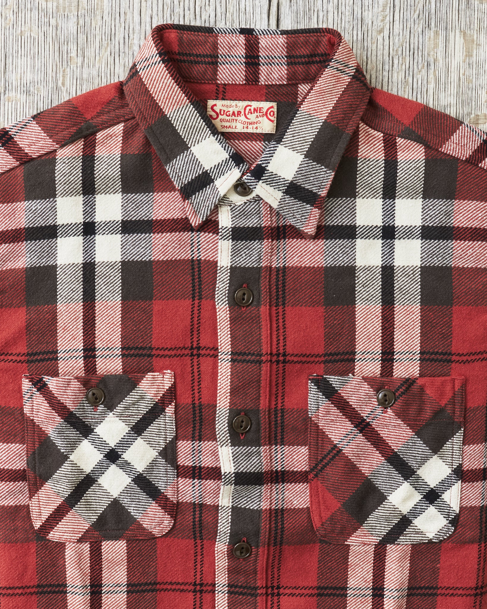 Sugar Cane & Co Twill Plaid Flannel Work Shirt Red SC29364