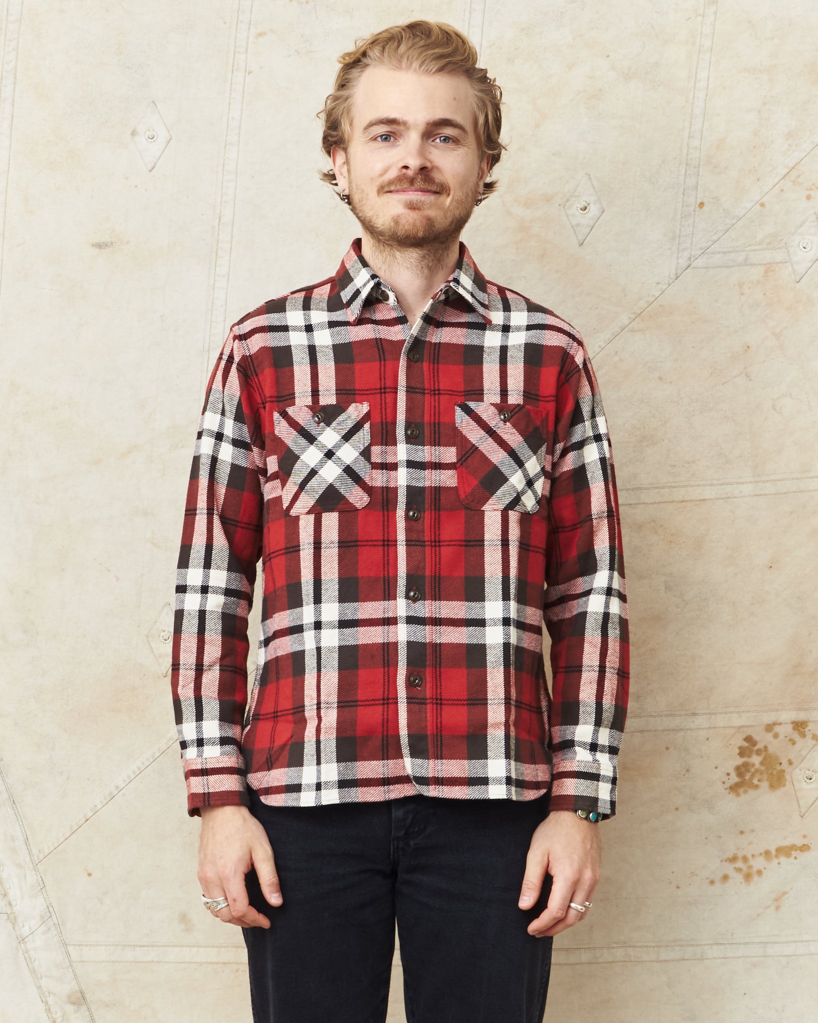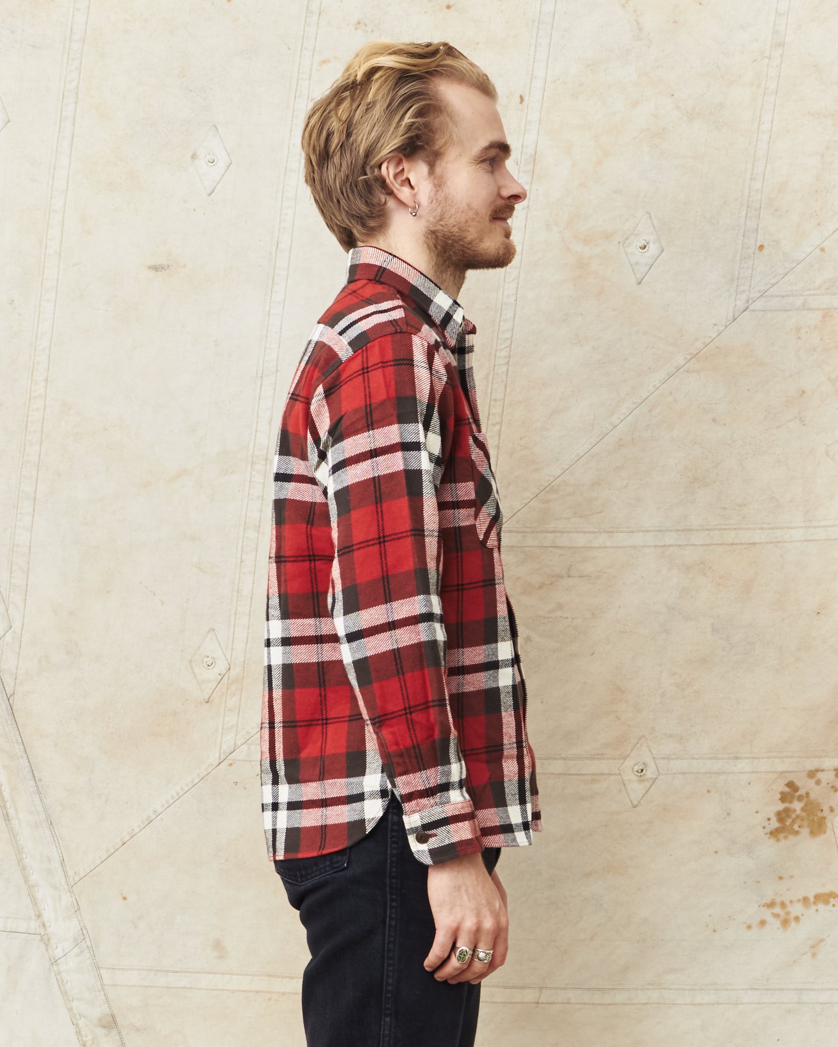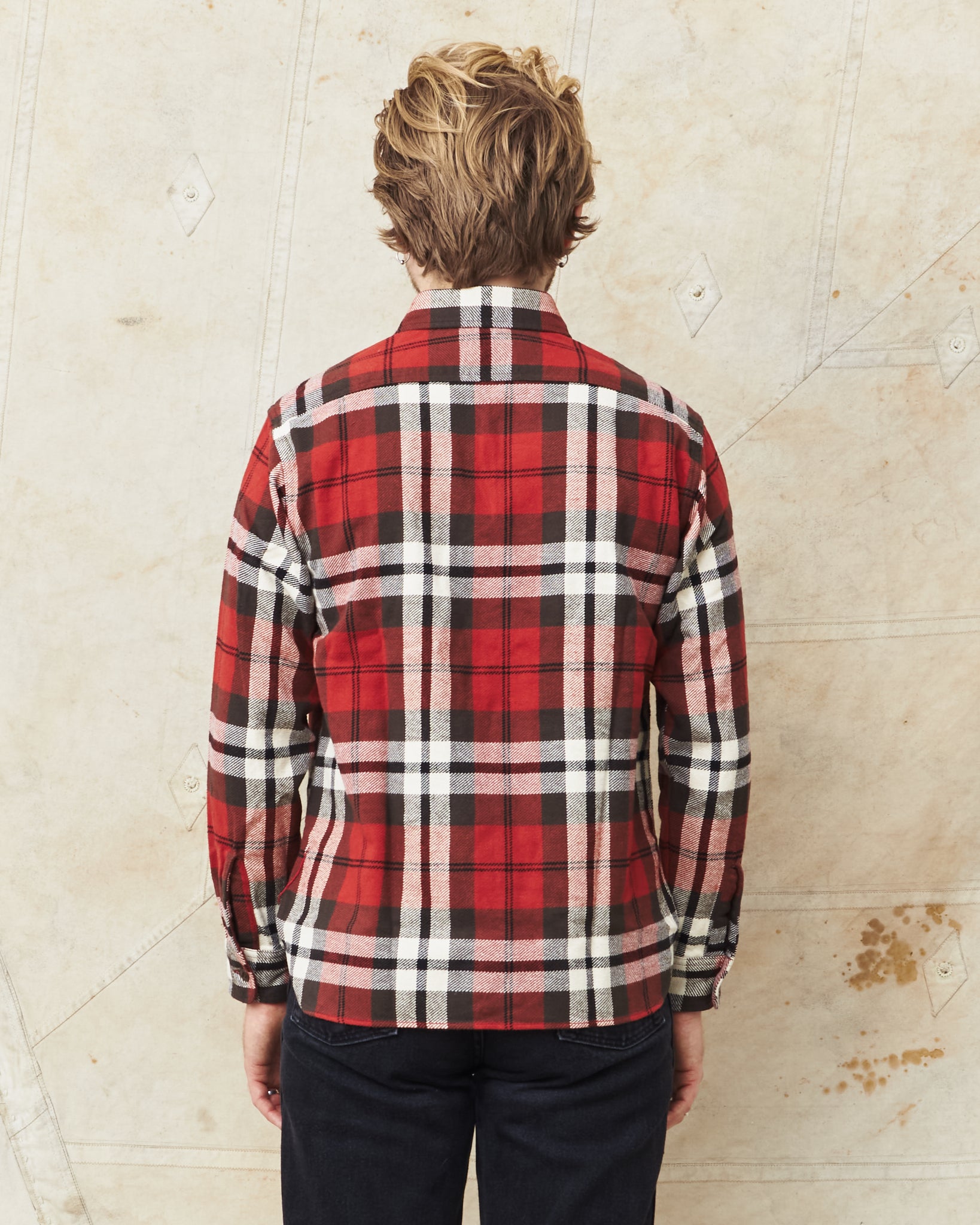 Sugar Cane & Co Twill Plaid Flannel Work Shirt Red SC29364