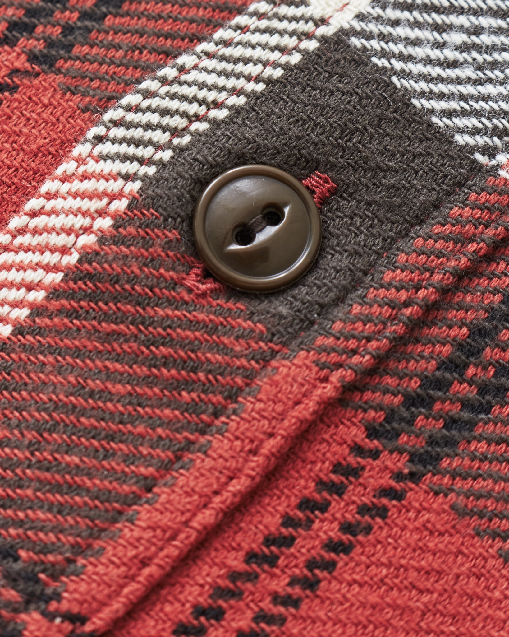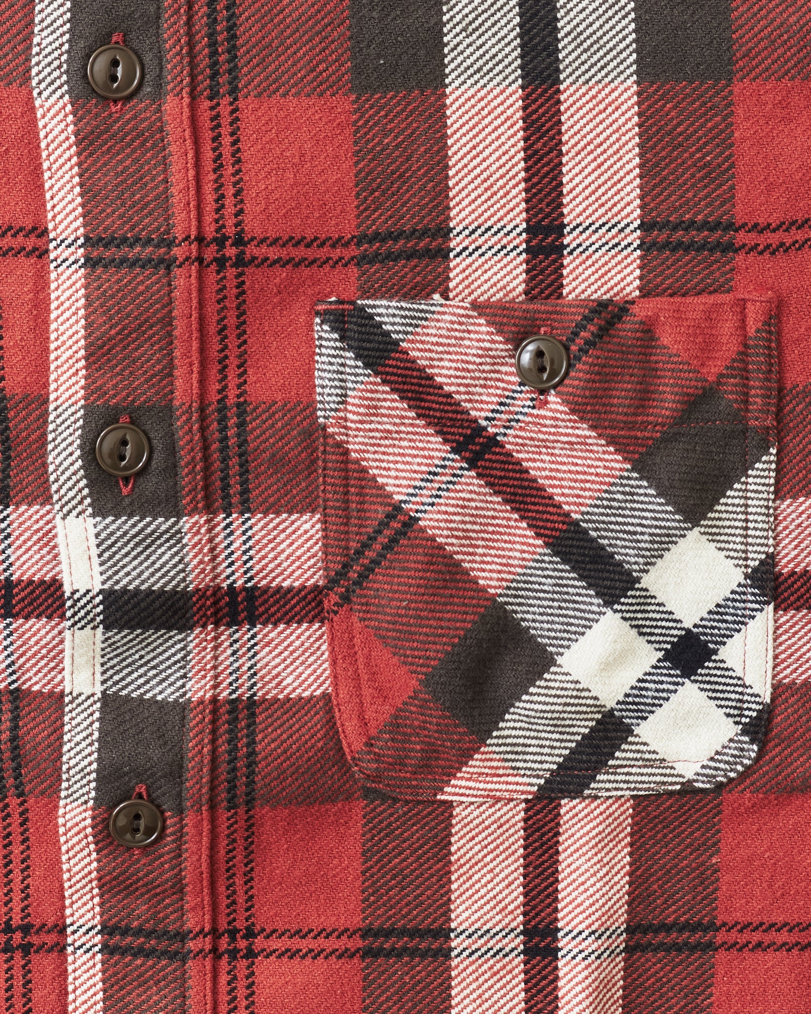 - Sugar Cane & Co Twill Plaid Flannel Work Shirt Red