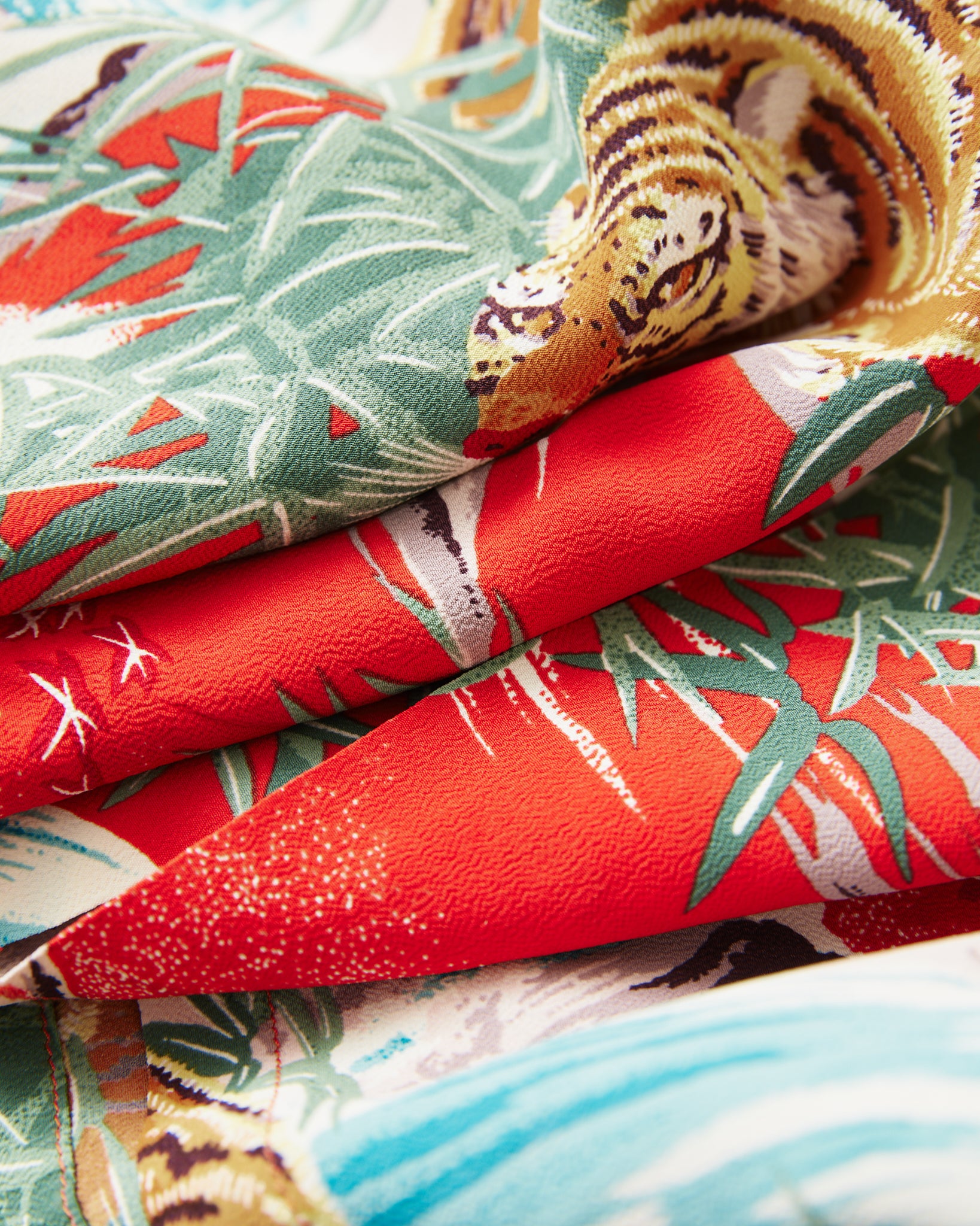 Rayon is a semi-synthetic cellulosic fiber that has been used in textiles since 1899 and is among others known as the go to textile for Hawaiian shirts. The secret that makes Rayon a perfect fiber for warmer temperatures comes from the characteristics of the fibre. It's soft, smooth, comfortable and some what shiny. Compared to cotton, Rayon is a less absorbent fibre making it perfect to wear in humid climates and in warmer weather. It isn’t a naturally warm fabric, which means that it doesn’t retain heat. It will stay cool and breathable, a necessity during the hottest days of summer.