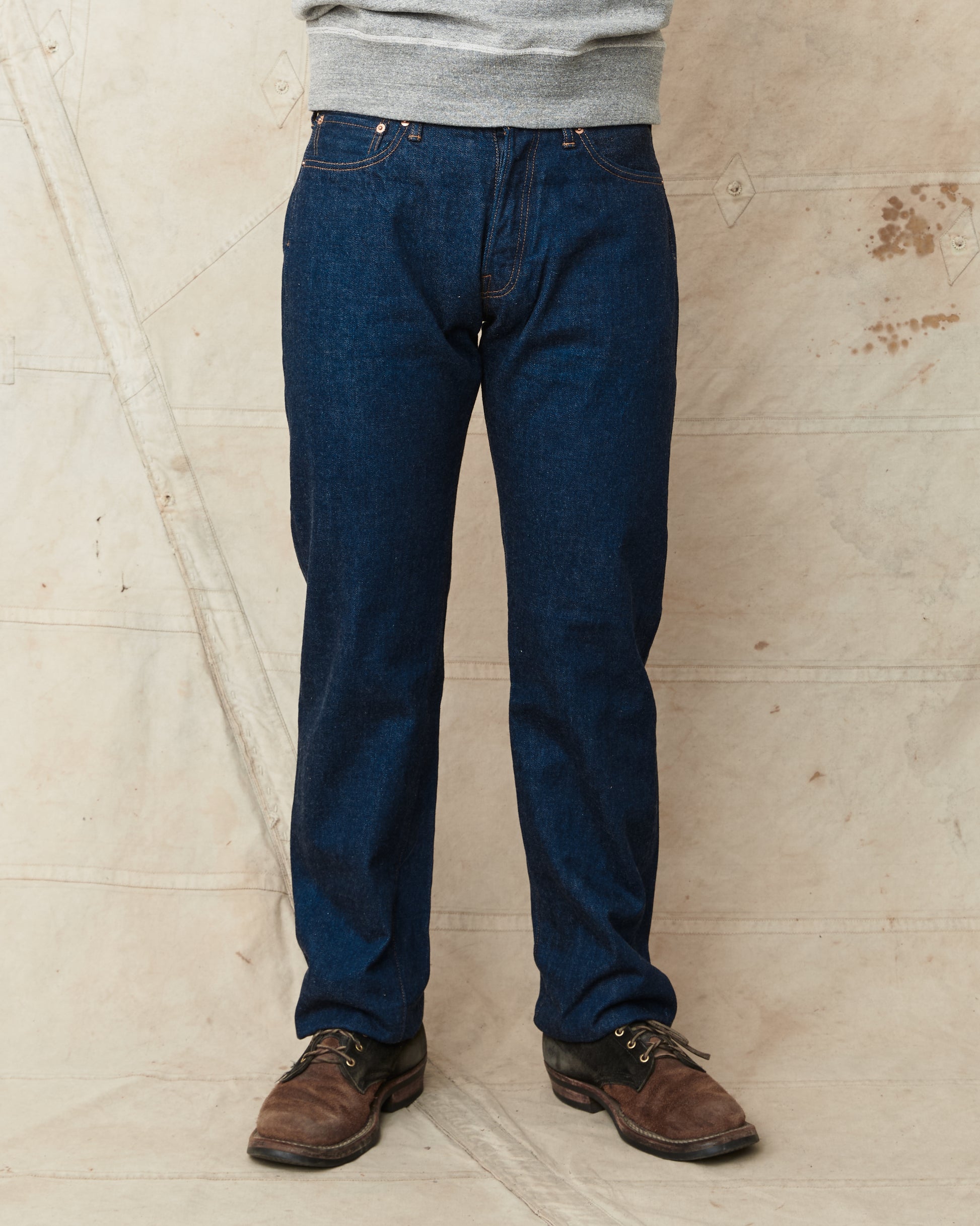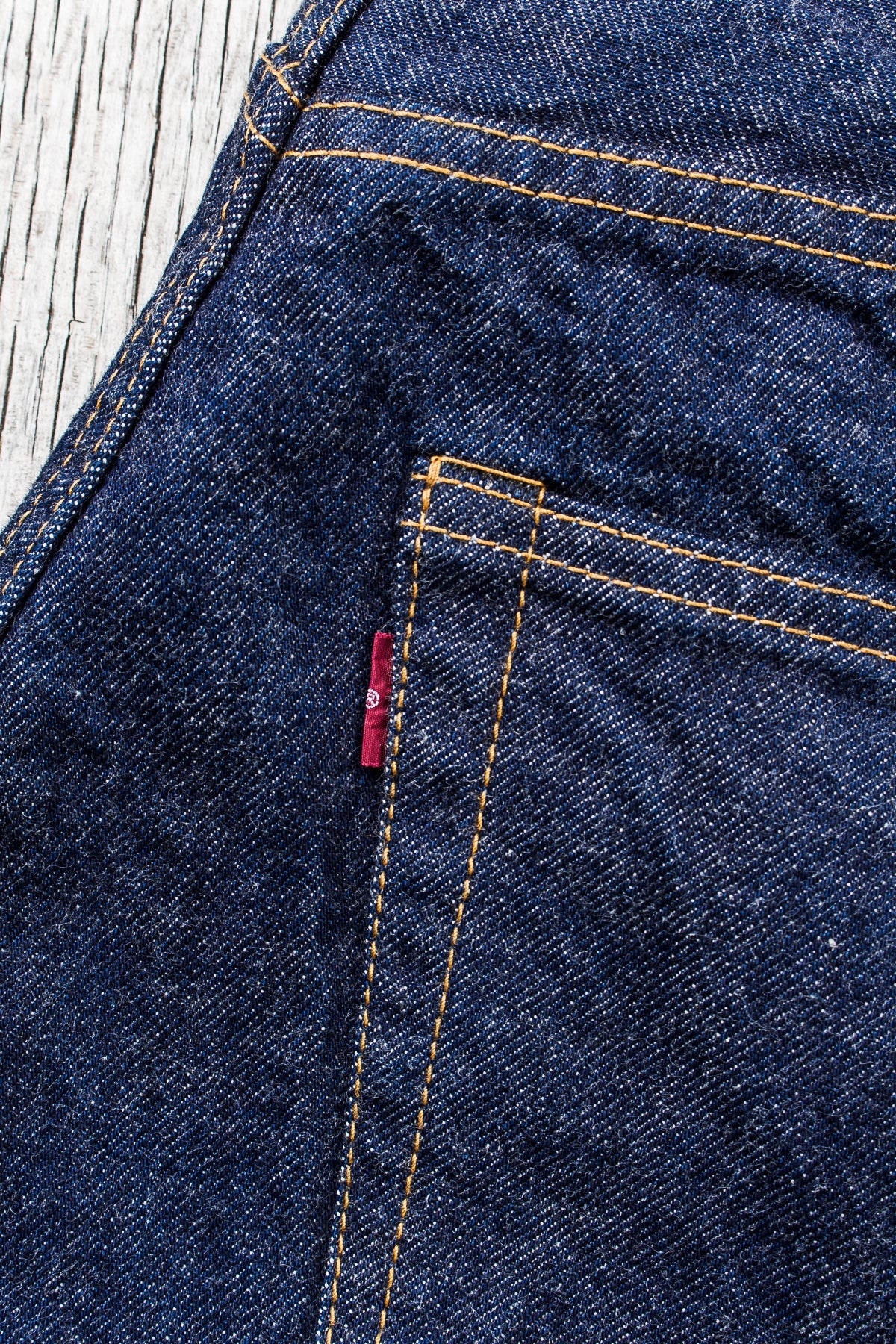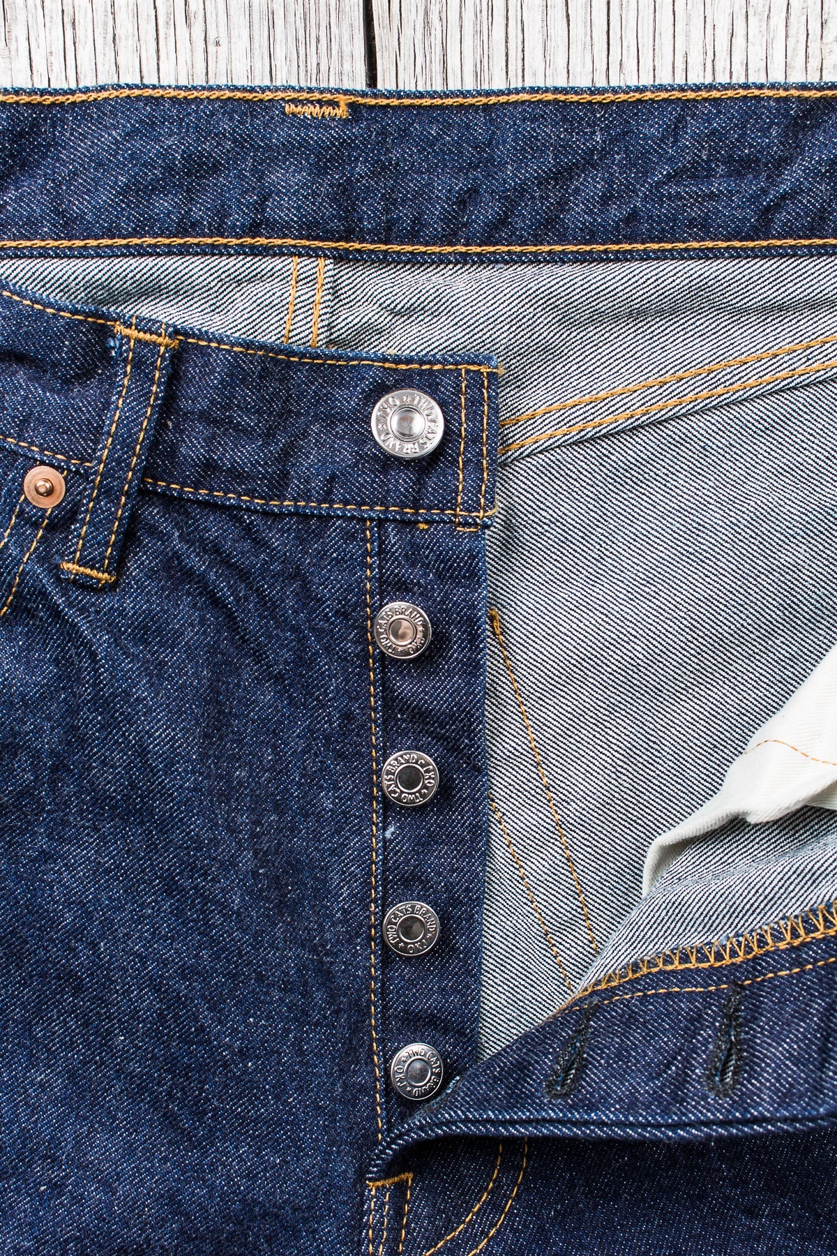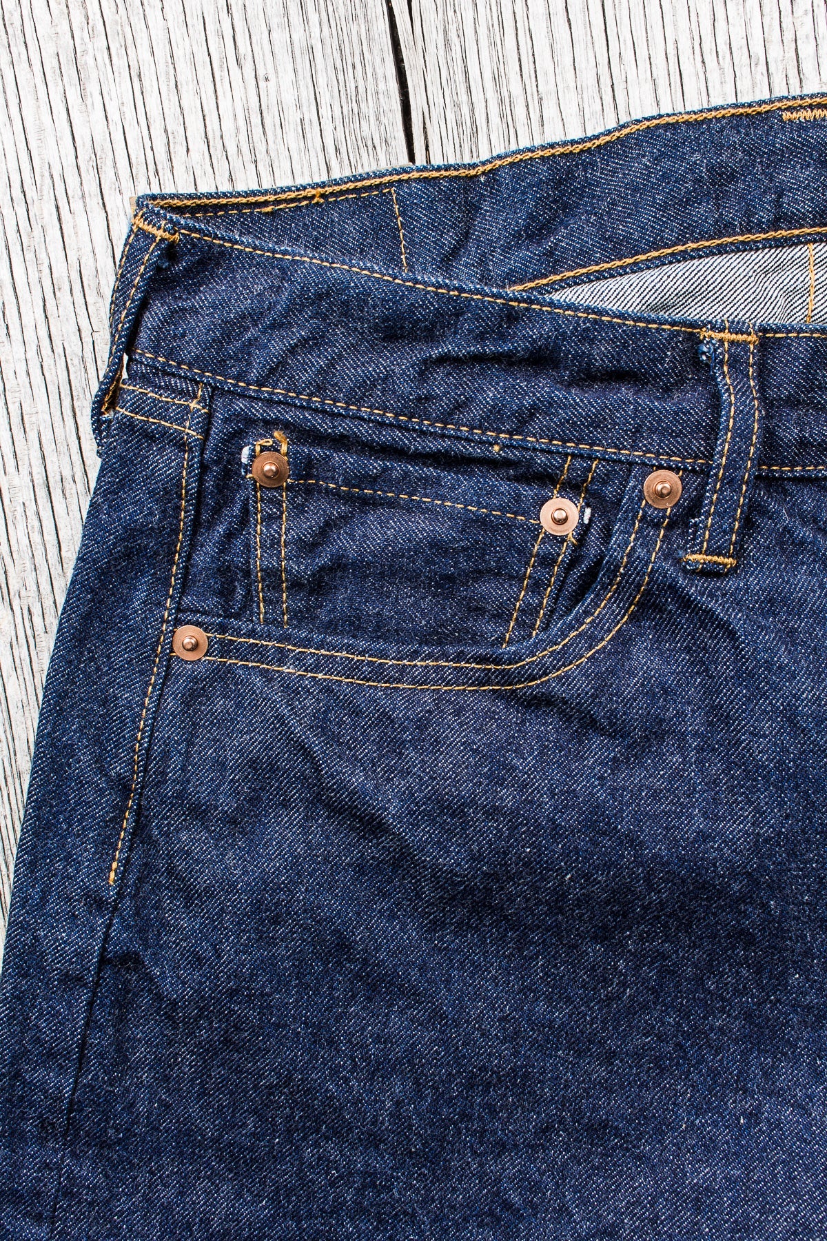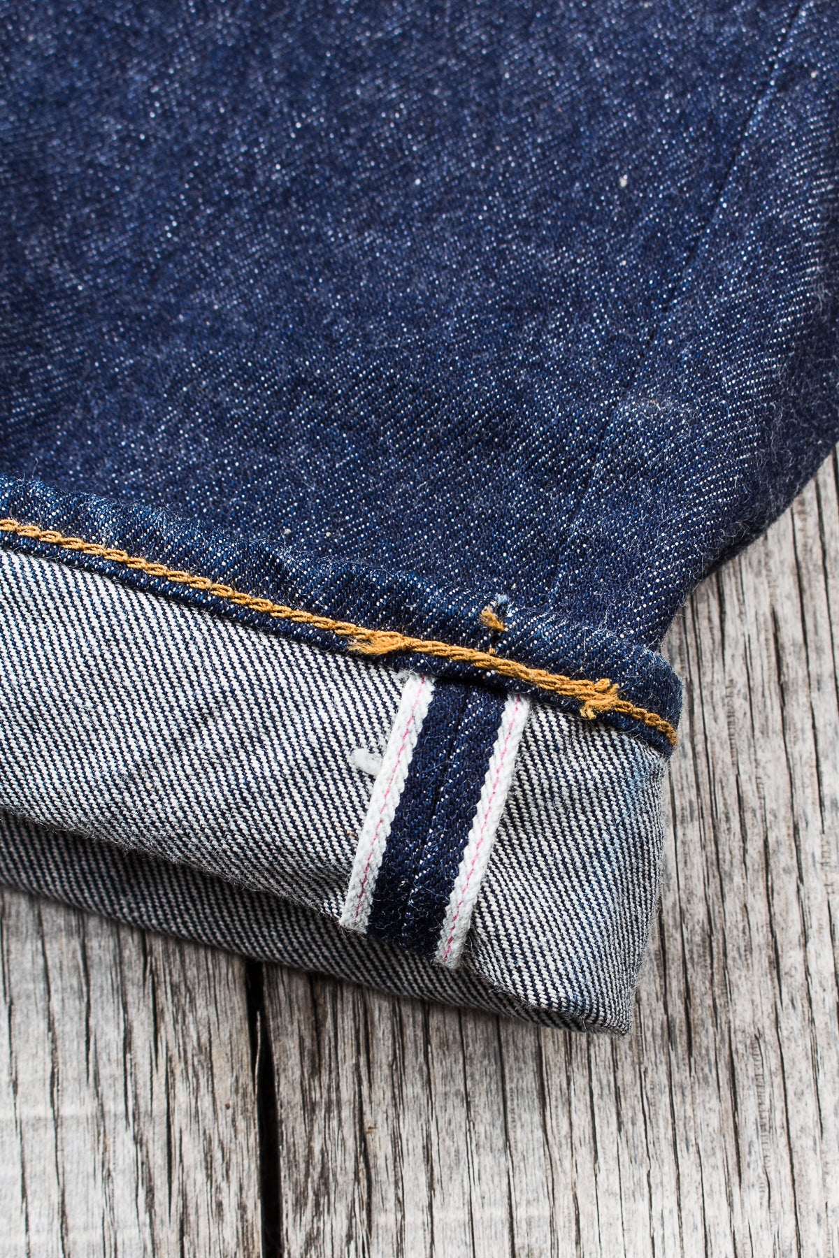 This pair of jeans are inspired by Levi's 501's from the early 1960's. They've got all the right details drawn from that era such as paper tag, button fly and the somewhat more blueish tint in the indigo dye. The fit is a bit wide with a slightly tapered leg and a lower waist than the 501's previous versions. Fabric used in these is a 13 oz 100% cotton denim made to imitate the fabric used by Levi's back in the early 1960's. Since these jeans are pre washed, no further shrinkage will occur. TCB produces their garment in their own factory. Their combination of great knowledge when it comes to vintage garments and a collection of old vintage machines makes these a great pair of jeans in every detail.