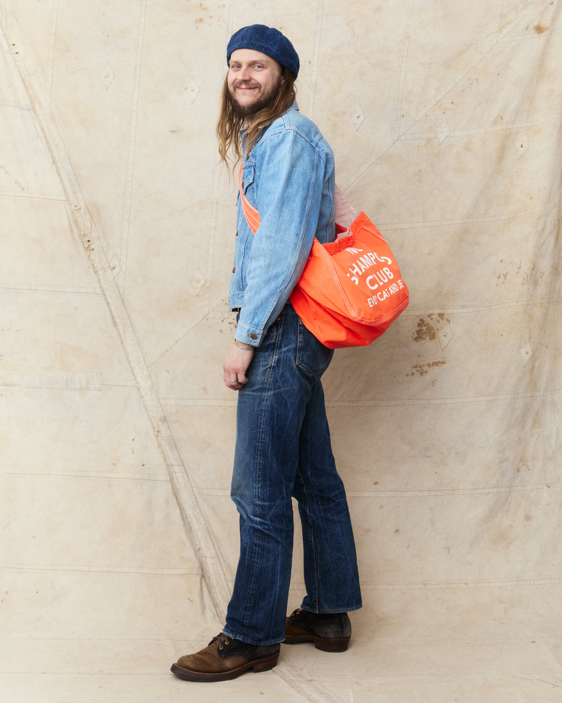 Douglas is 180cm tall and weighs 85 kilos, combining the bag with a pair of Sugar Cane & Co 1947 Jeans & a pair of White's Semi Dress Boots.