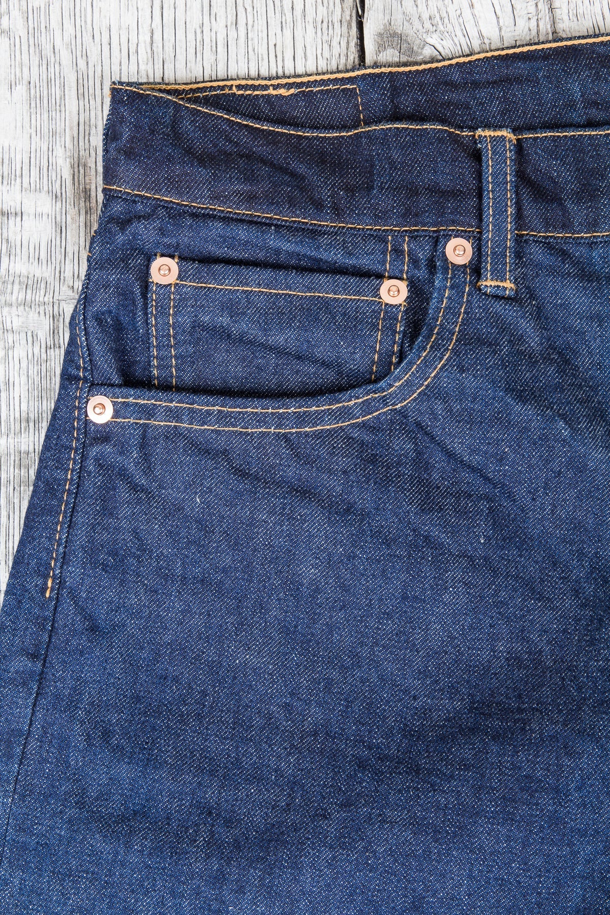 This pair of jeans are inspired by the model known as 505 made by Levi's in the 60/70s. Made with a sturdy Talon zipper and Japanese selvage fabric loomed to be as close to the fabrics specs from that time as possible.