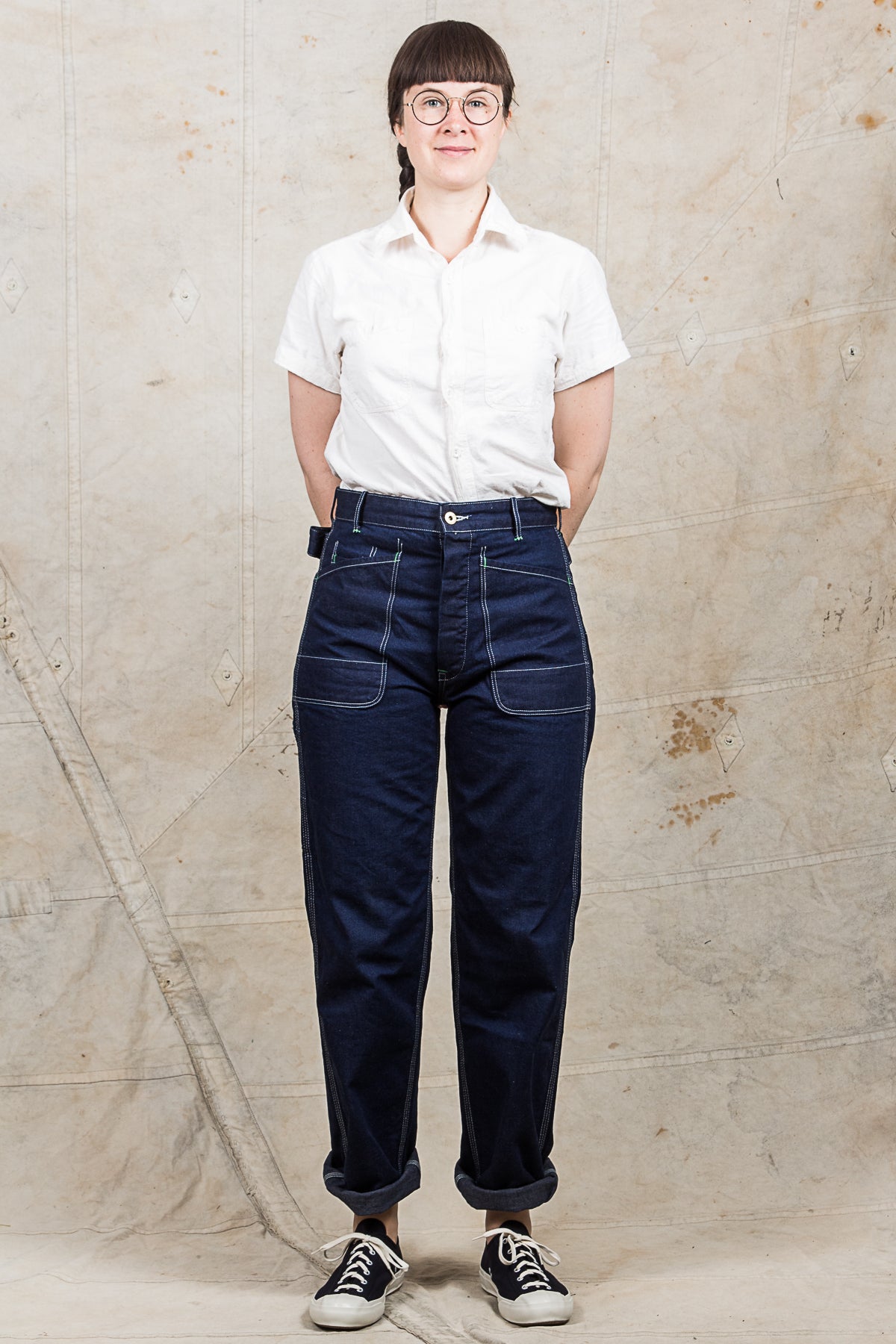 The result of our collaboration is the Tabby's work pants that we are now happy to be able to offer to you! These pants are made of a 10 oz denim fabric, which well mimics the weight and hand-feel of the original garment. There are two big front pockets and a small coin/watch pocket, and two big back pockets.