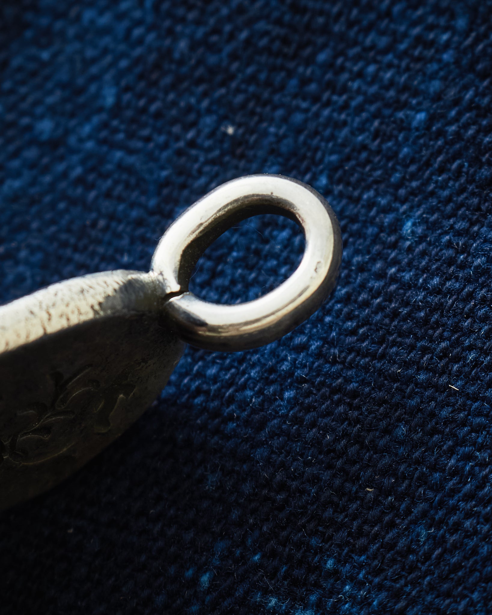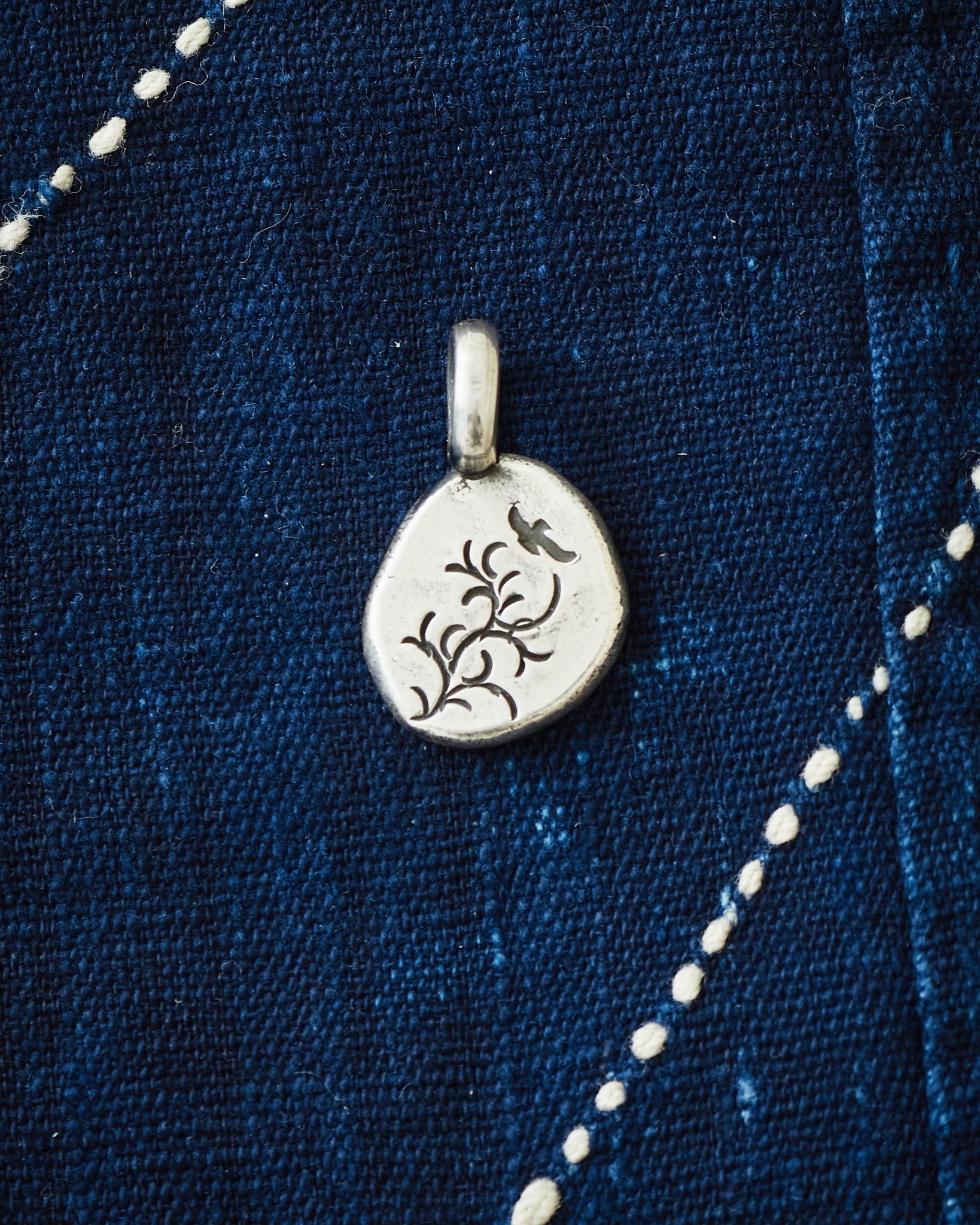 The pendant is forged silver with a Thunderbird & Branch motif.