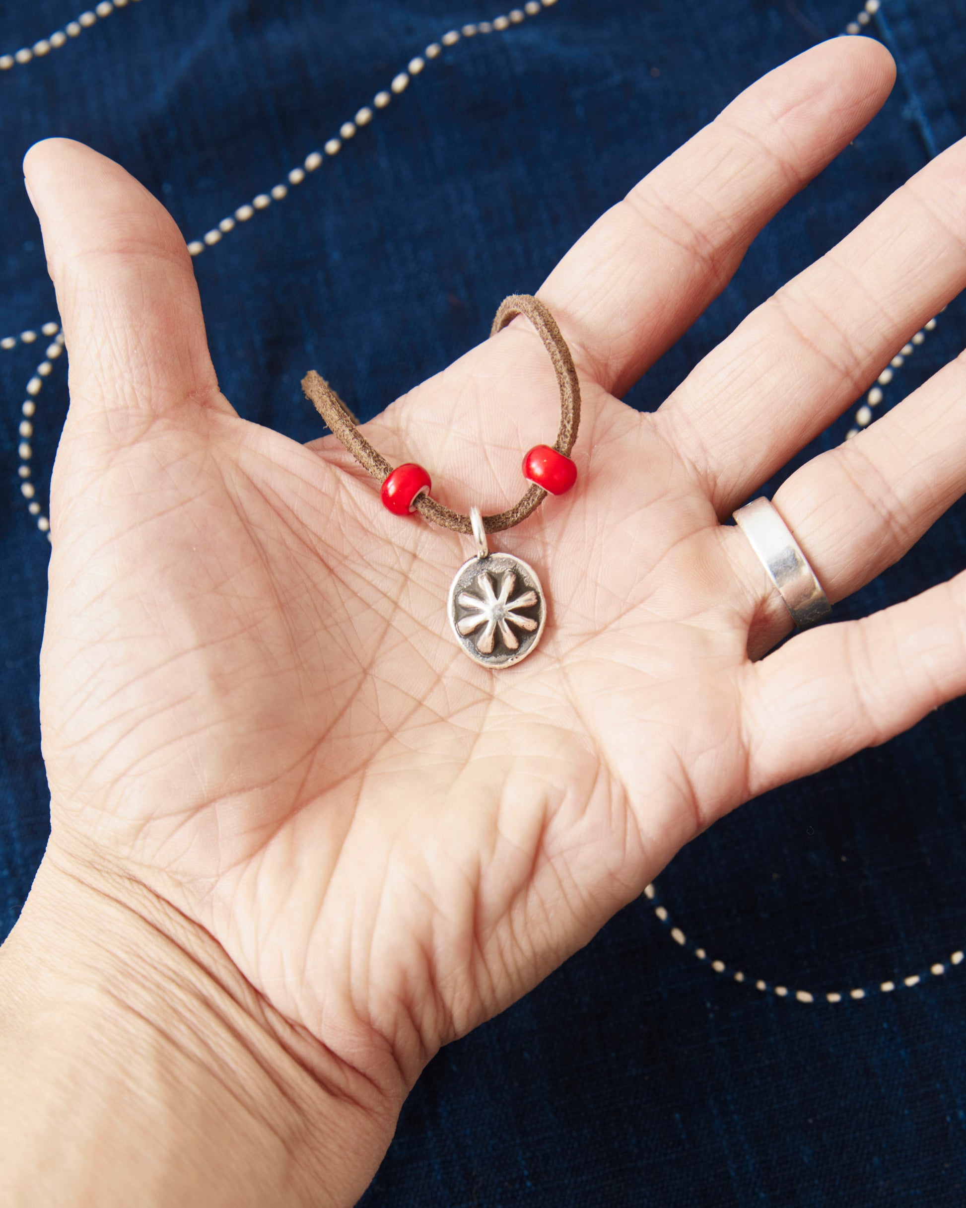 This pendant is made in Sweden by Tenable Crafts. These products are one-offs and all hand made by Hampus Luhanko who is inspired by the Native American jewelry from the so-called "Fred Harvey era" dating back to the early 20th century.