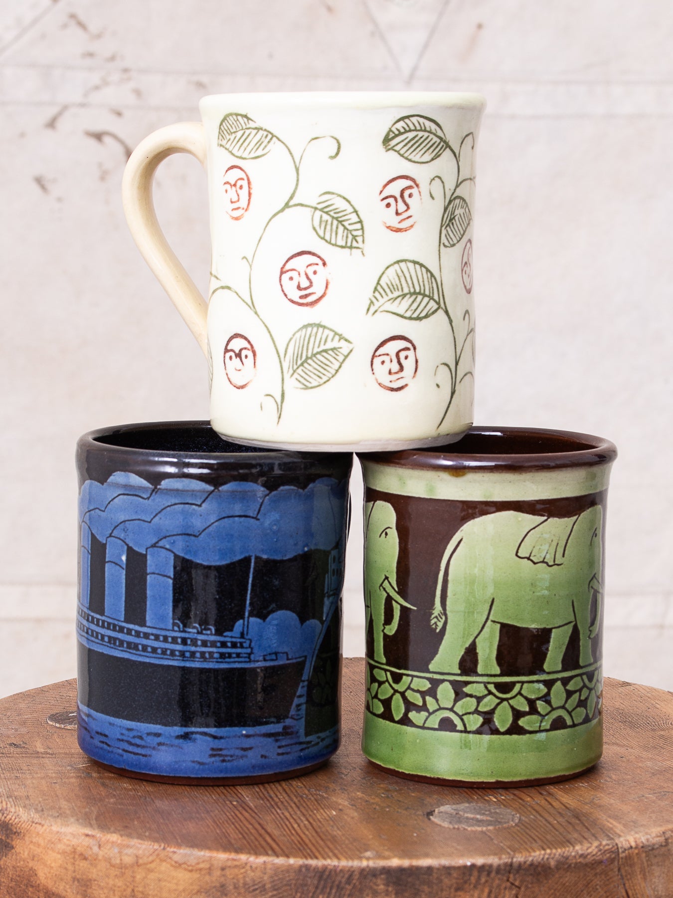 Tender Hand Thrown Coffee Mug Vines Glaze