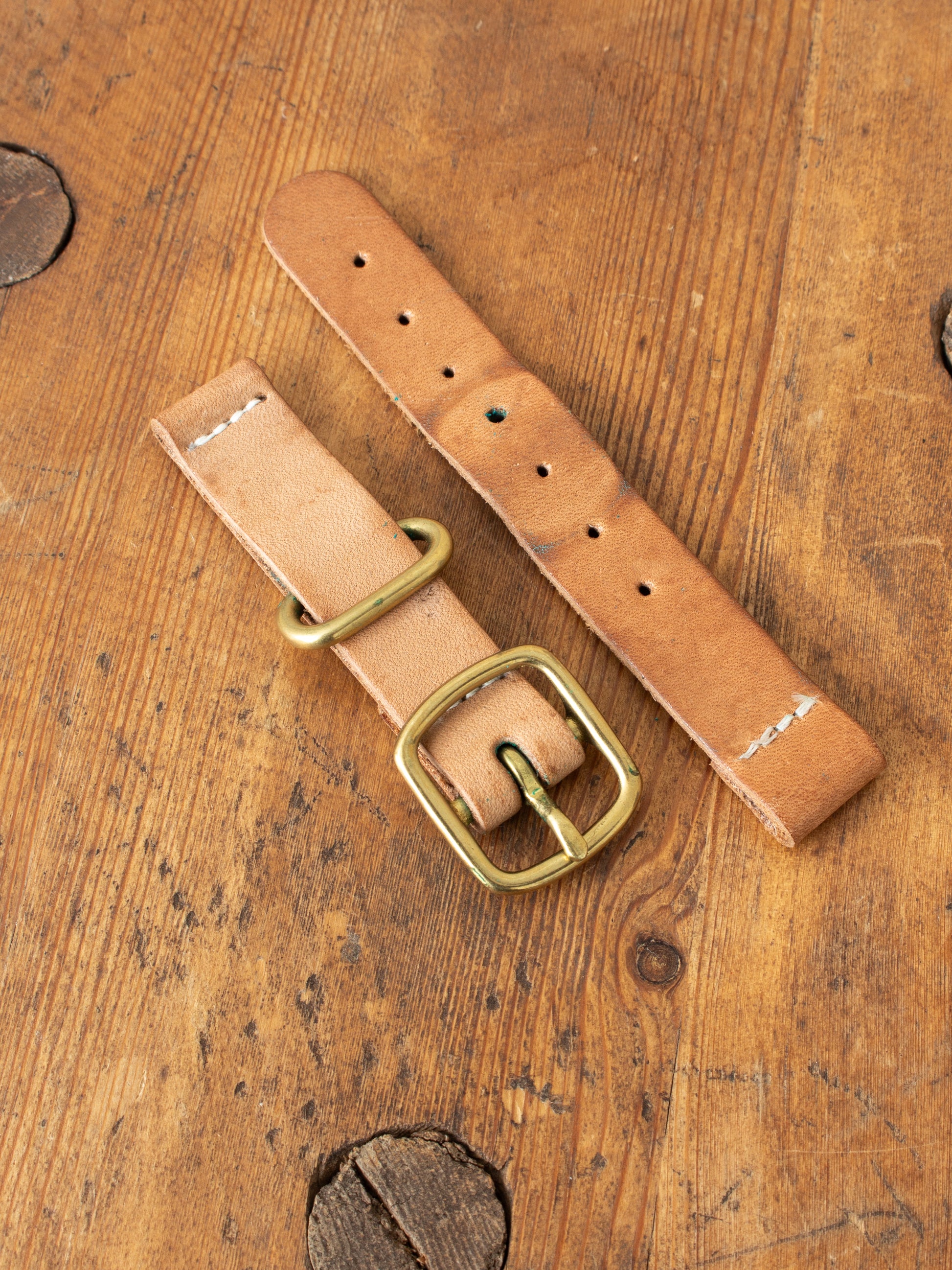 Tender’s two piece watch strap is cut and made in England, from supple leather wattle bark-tanned in England. The buckle and loop are sand-cast from solid brass, also in England. After tanning the leather is stained by hand, or left natural, then heavily greased. The leather will will darken and patinate with age to become unique and personal.