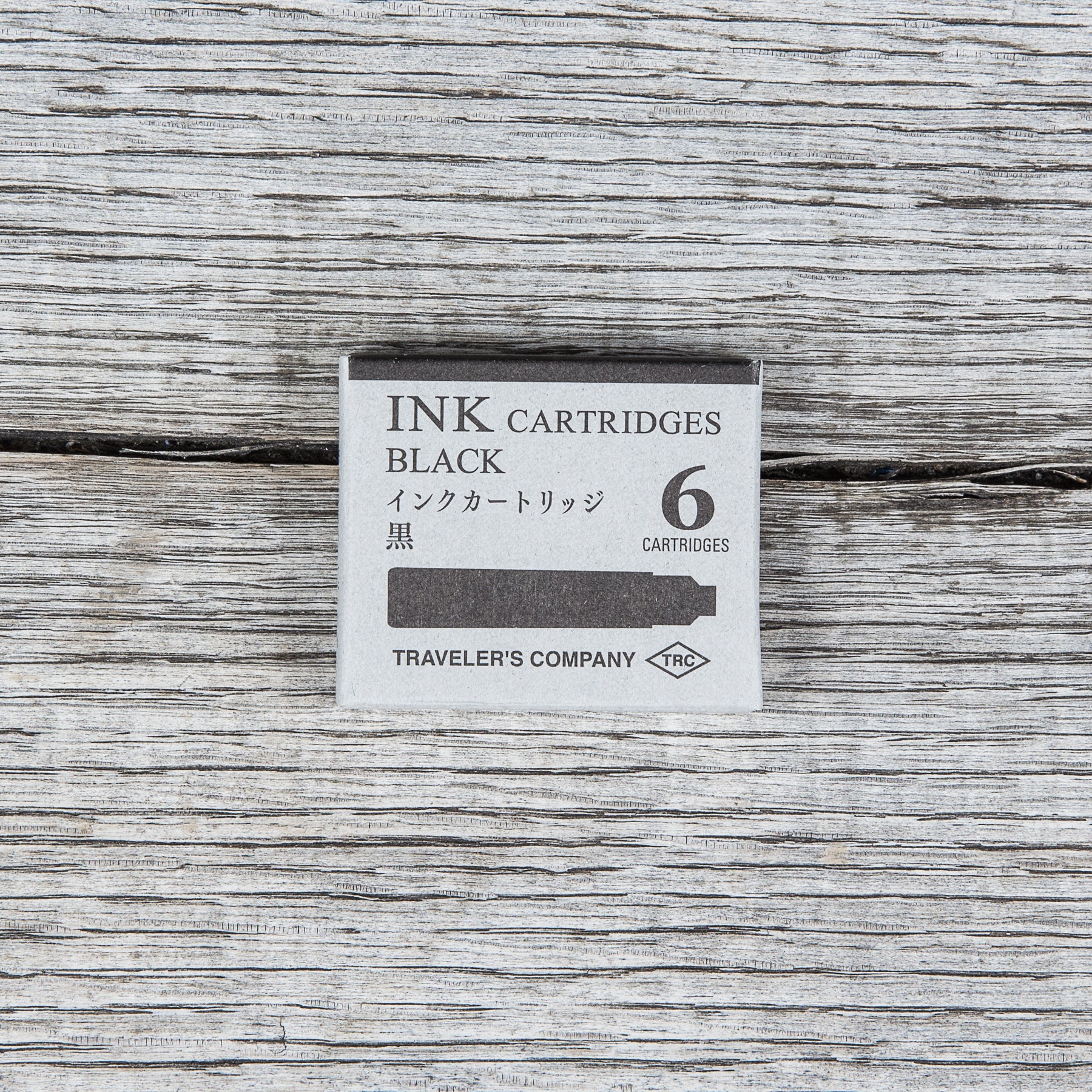 - Traveler’s Company Cartridges for TRC Brass Fountain Pen & Rollerball Pen - Black ink - Contains 6 cartridges - Made in Japan