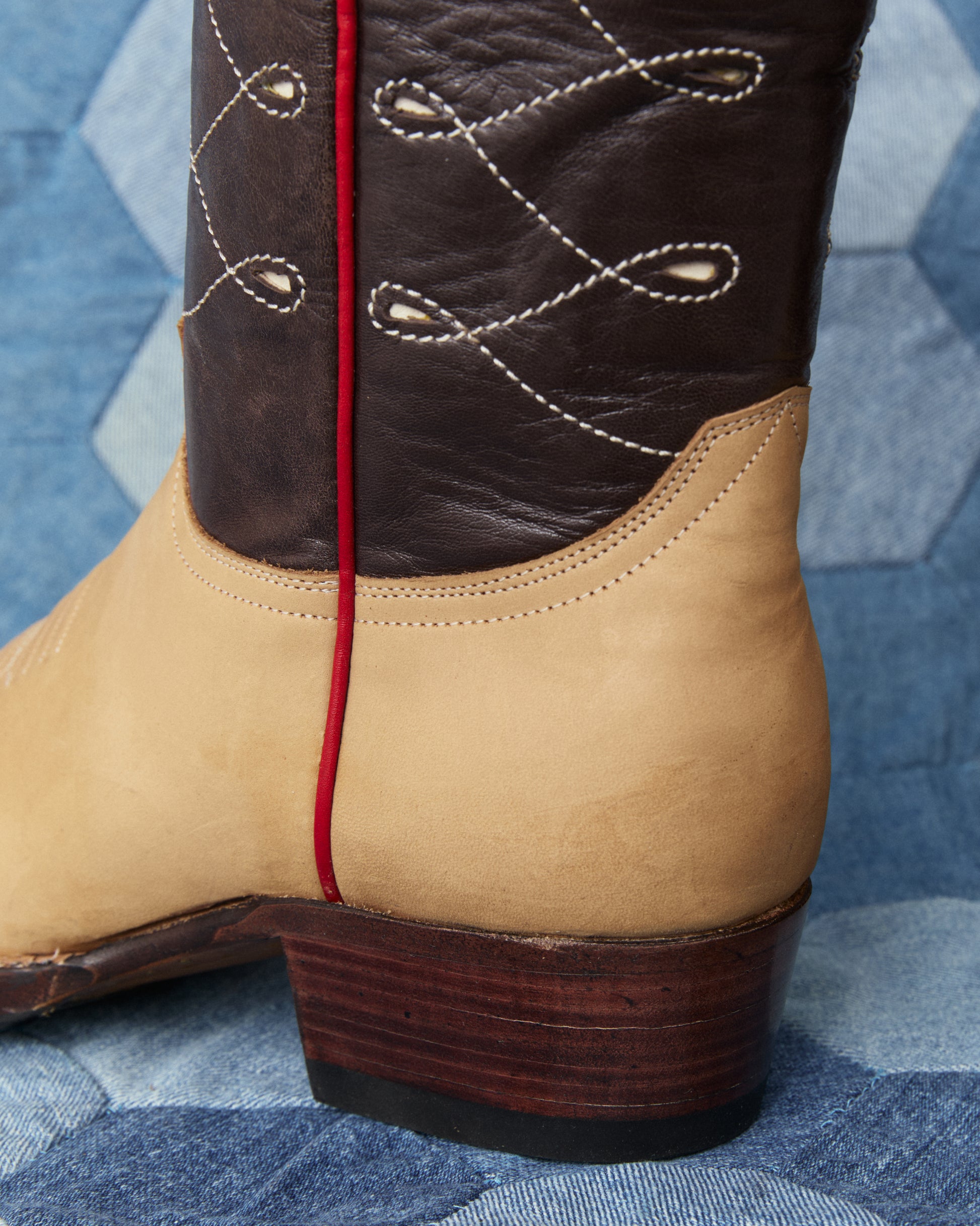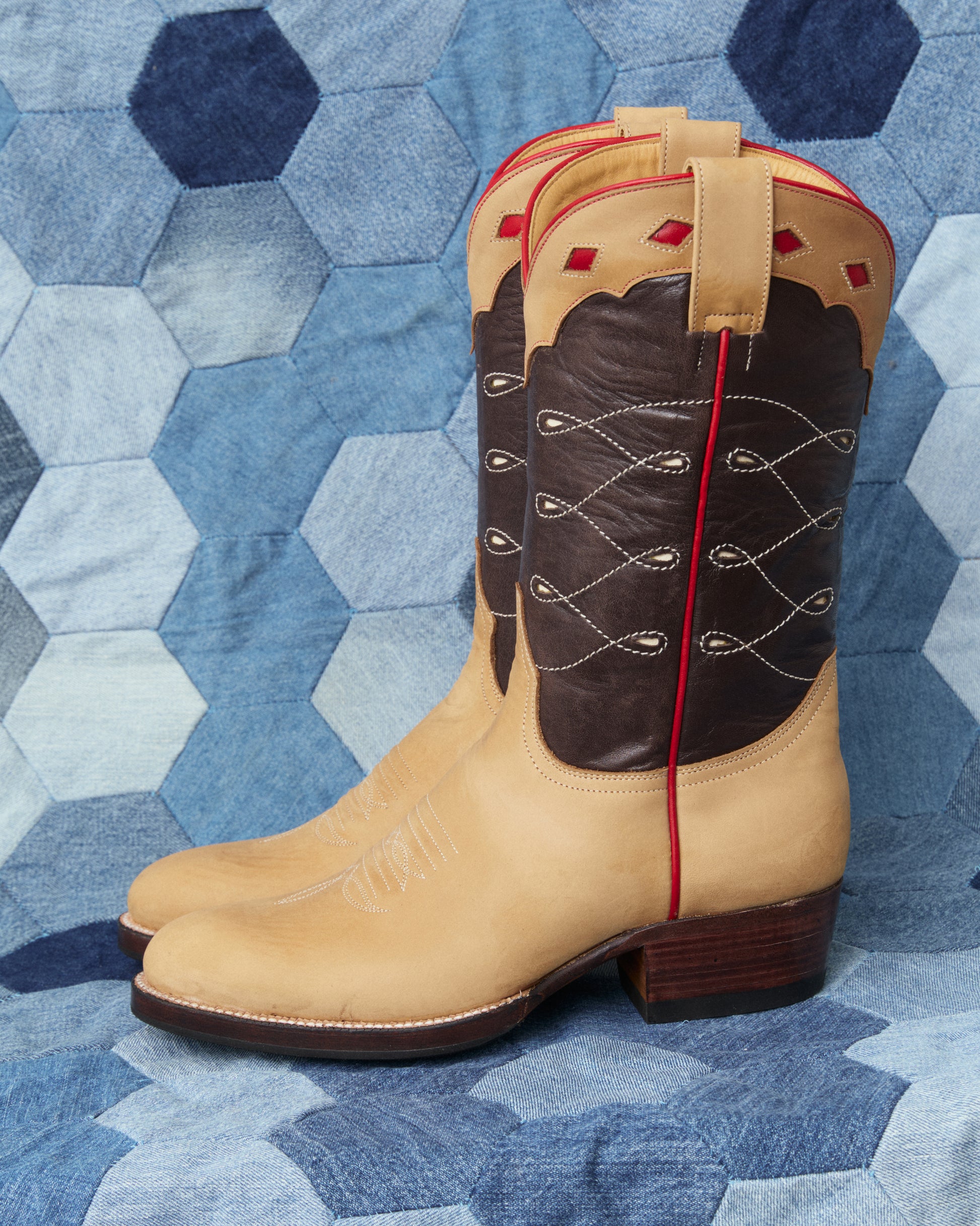 This is a Western Boot inspired by the Authentic Art of Western Boot Making. This version of the Durango has a beautiful Two-tone design, featuring intricate stitching, Red Diamond inlays, White Teardrop inlays, handmade punto marcado detailing, full leather insole, stacked leather heel, carved channels and a 120 degree mini welt, secured with brass and wooden pegs and of course a high quality leather exterior.
