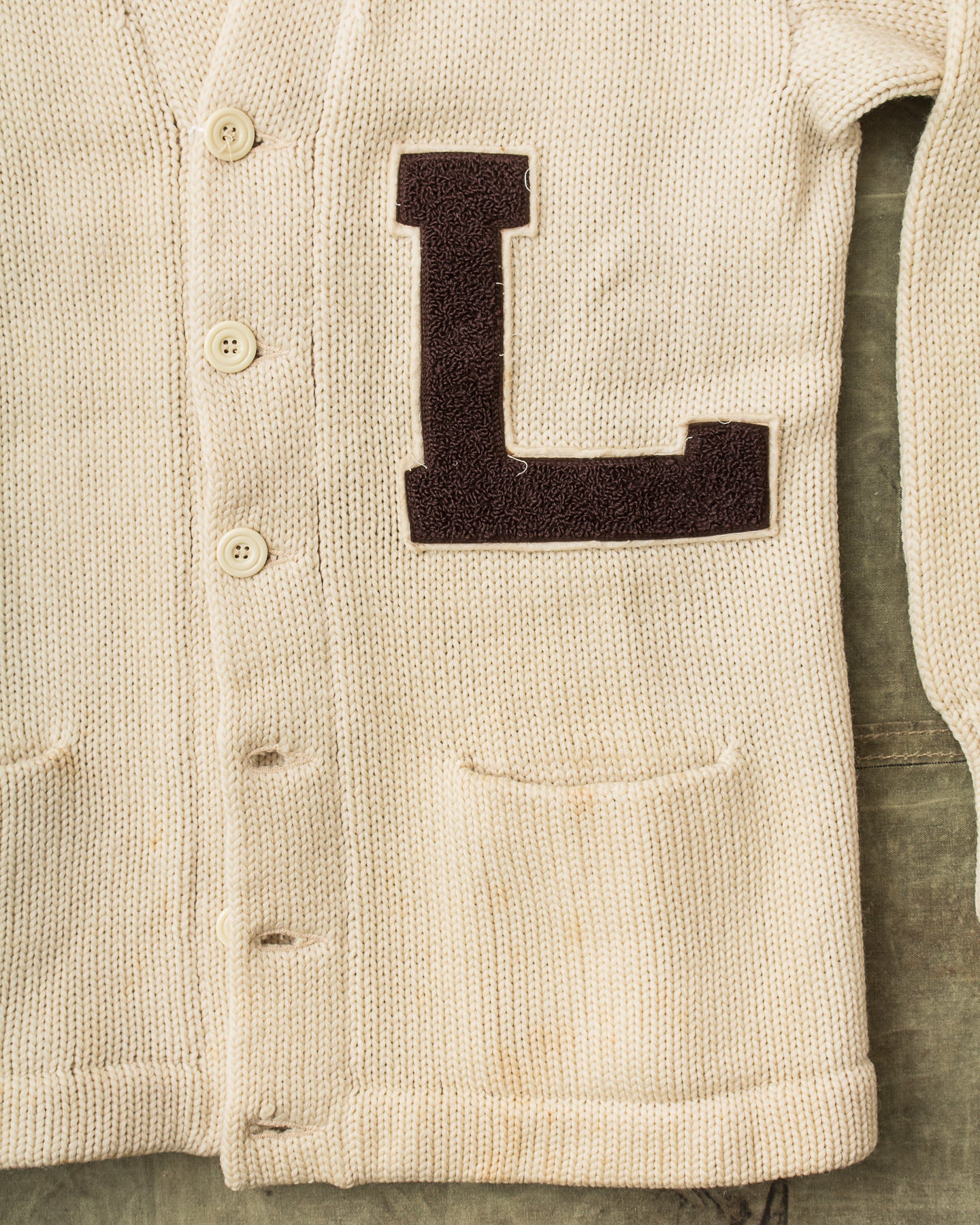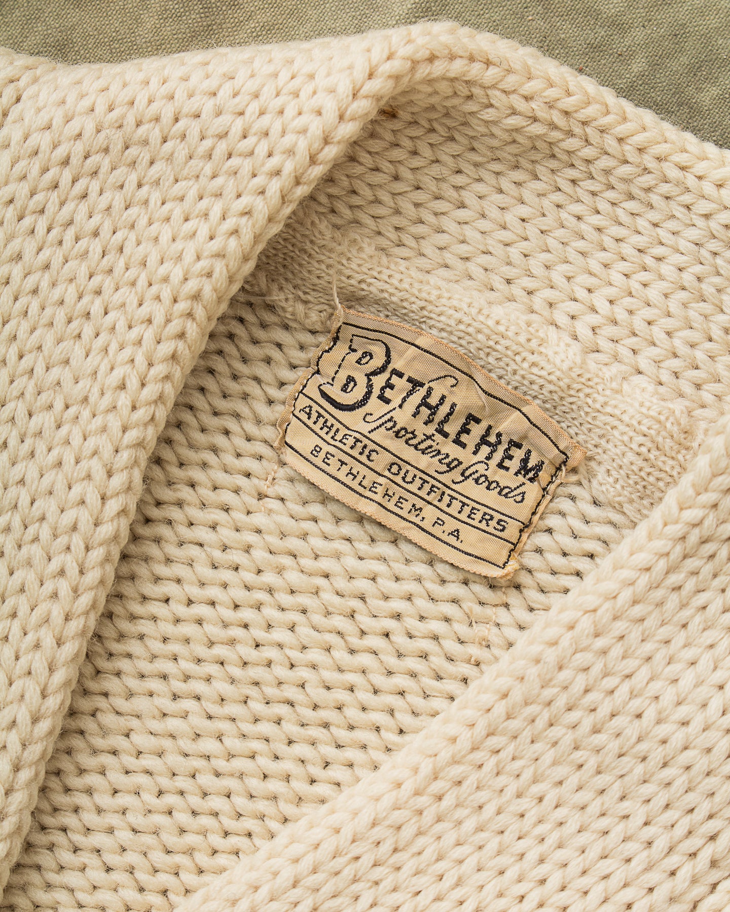 You are looking at a Vintage Knitted Letterman Wool Cardigan made in U.S.A. by Bethlehem Sporting Goods and we estimate it is from the 50's. It's a great example of a nice and cosy garment from the middle of the last century.