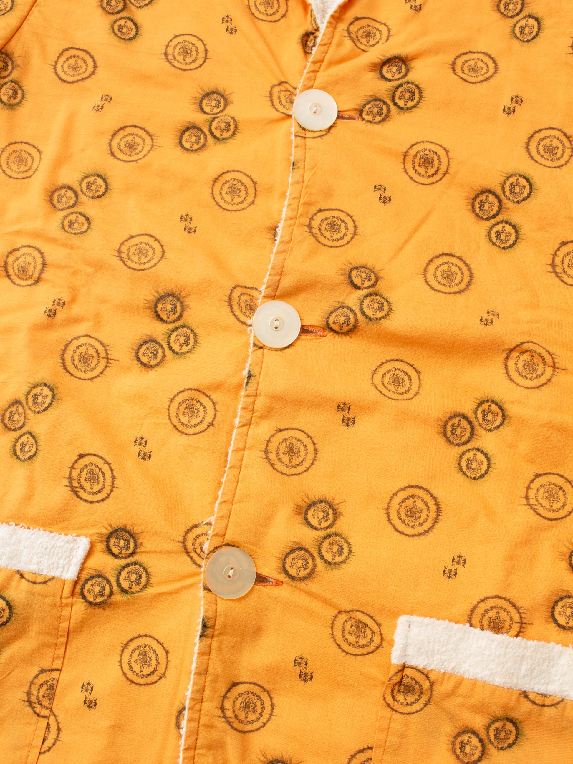 Made of a beautiful printed orange fabric and fullt lined with cotton terry cloth. The perfect summer garment Imagine putting this one on after a refreshing swim in the ocean!
