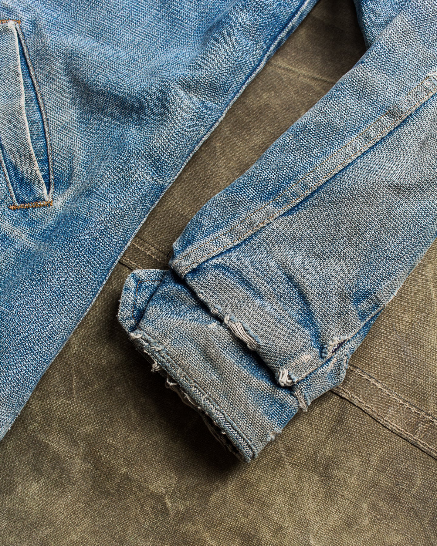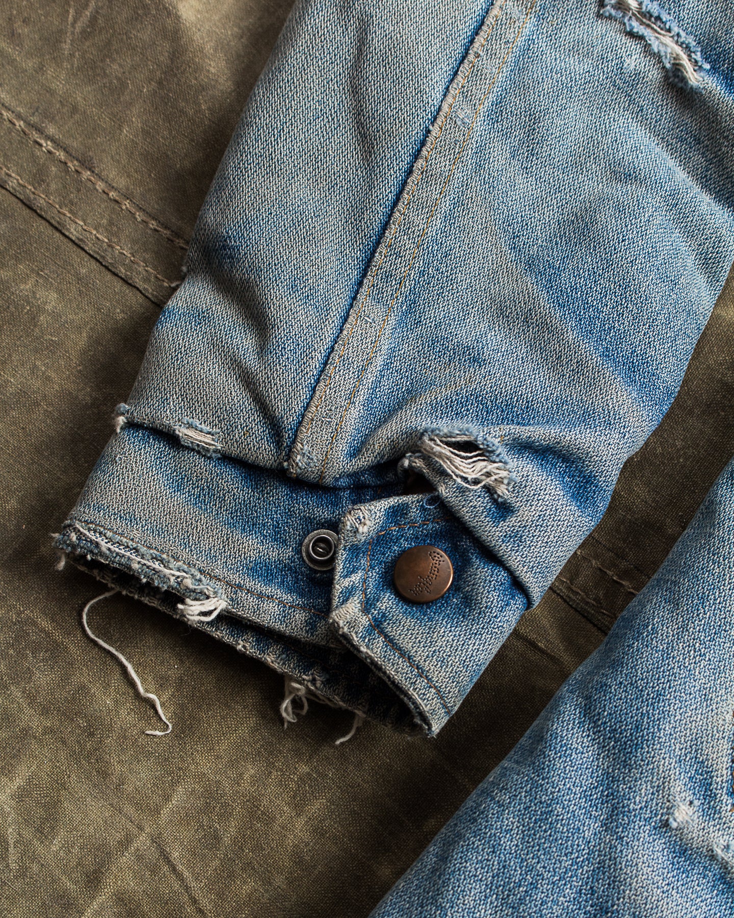 We estimate this beautiful vintage jacket to have its origin in the 70s. Apart from the absolute earliest Wrangler garments from the late 40 and 50s. We think that the 60s/70s garments made with broken twill denim are Wrangler at their best! This jacket is a clear example of that for us. the patina that these vintage garments get is absolutely incredible and it's hard to imagen that this jacket has been dark blue and new at one pint.