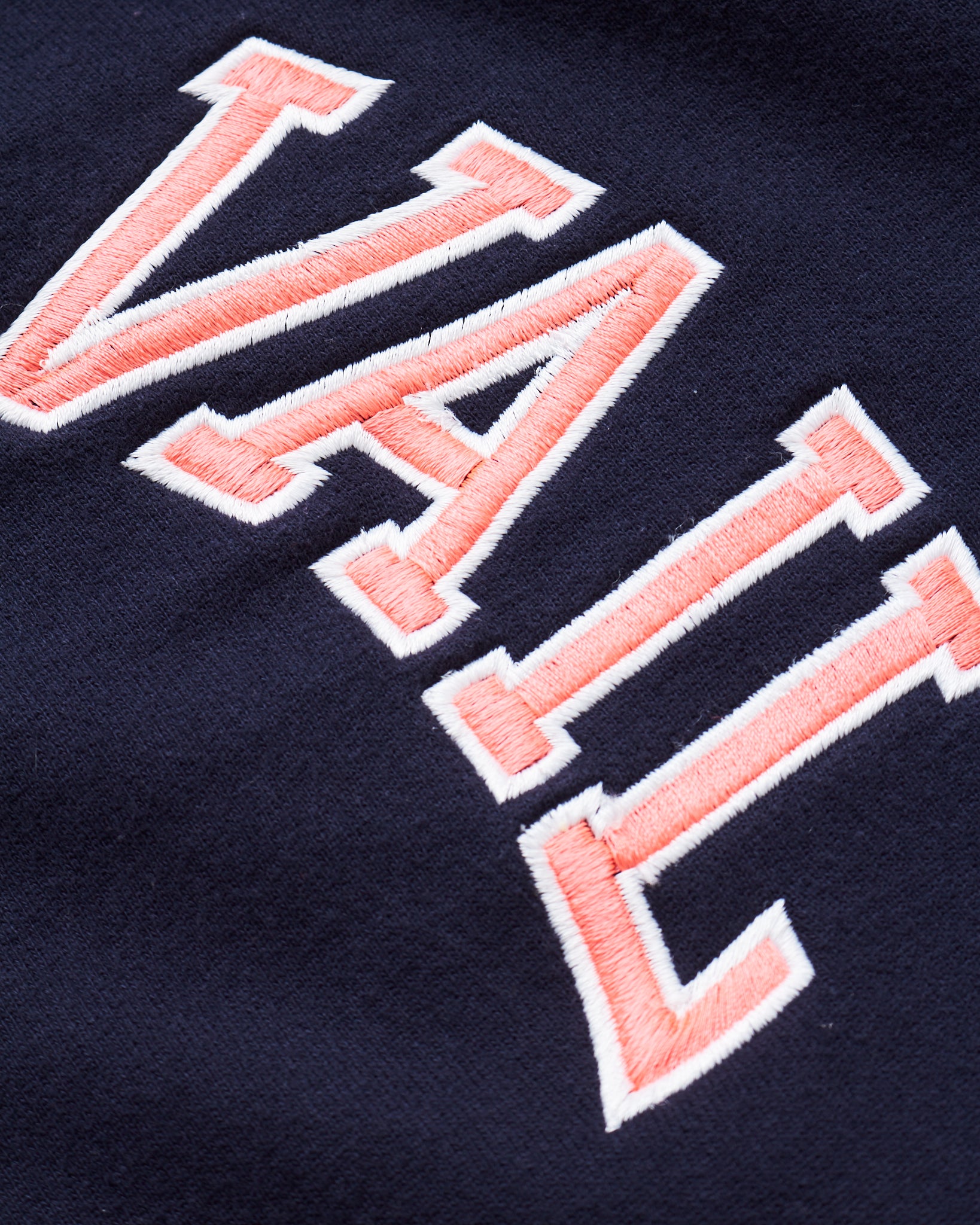 This is a vintage Champion Reverse Weave Sweatshirt with embroidered Vail lettering in white/pink, the color of the sweater is Navy blue. The state is very good vintage condition. The size is labeled as Large, but please see our measurements to ensure a good fit.
