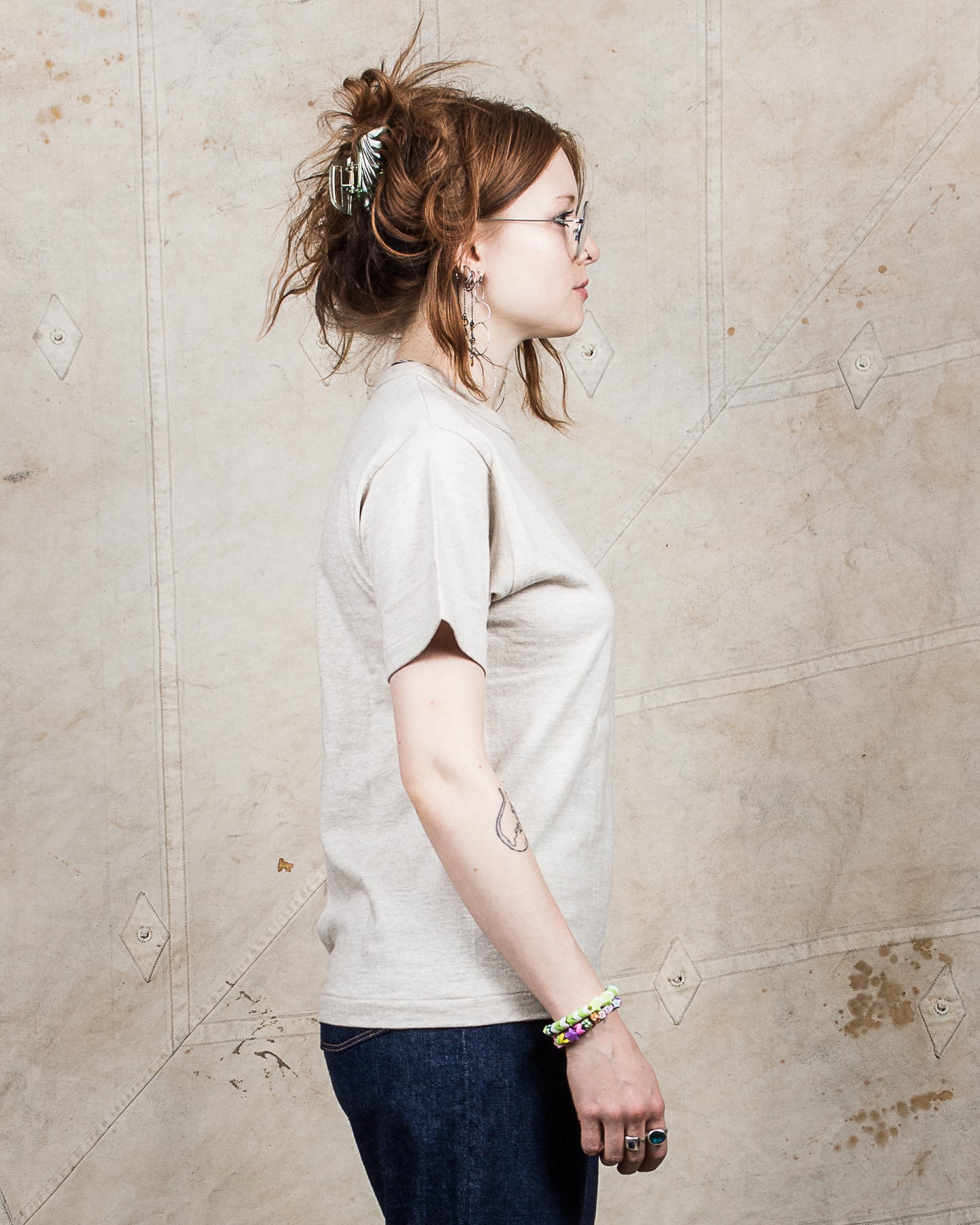 These t-shirts are knitted in Japan using vintage circular knitting machines that give the fabric a slubby and sturdy texture, just like a vintage t-shirt.