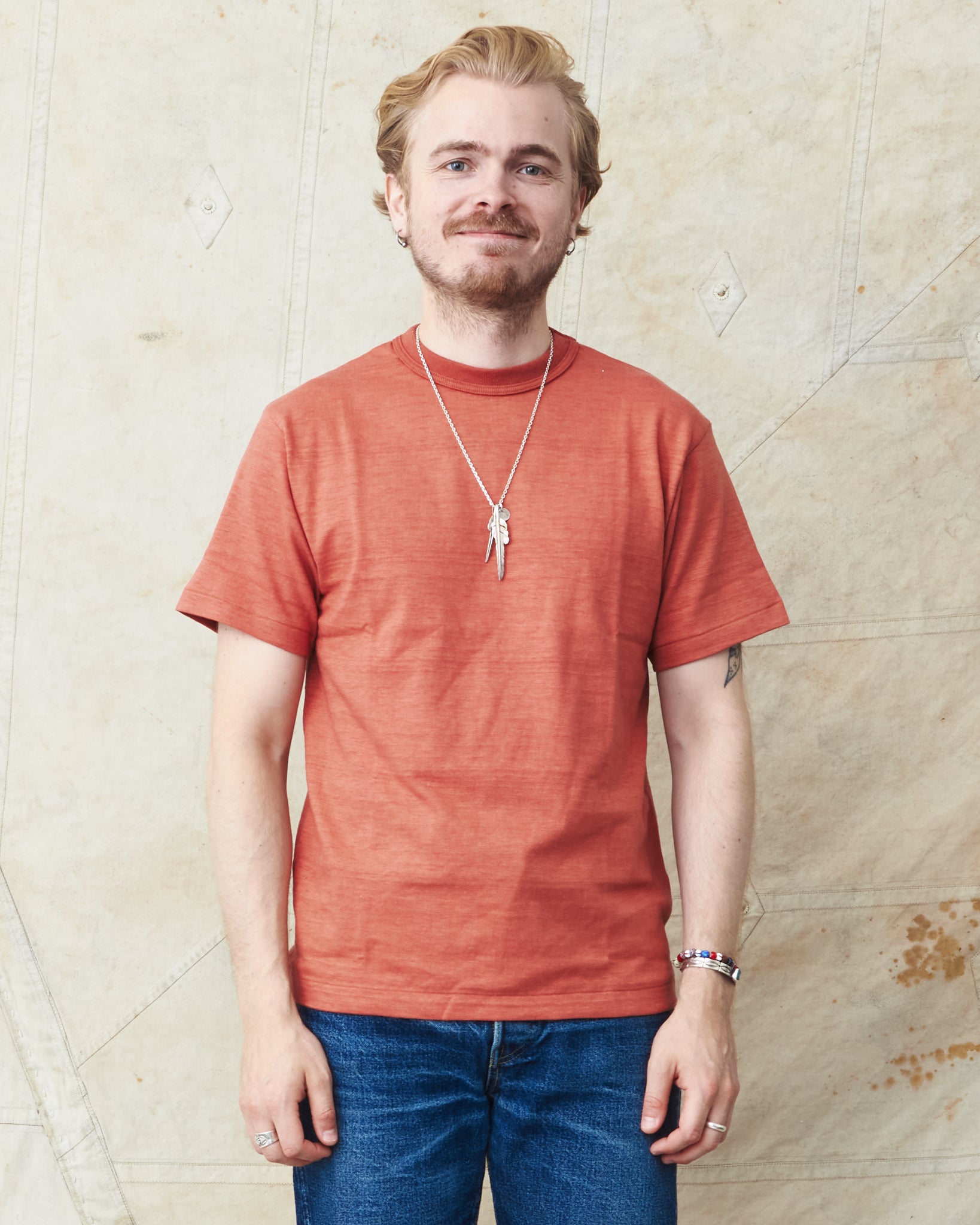 These t-shirts are knitted in Japan using vintage circular knitting machines that give the fabric a slubby and sturdy texture, just like a vintage t-shirt.