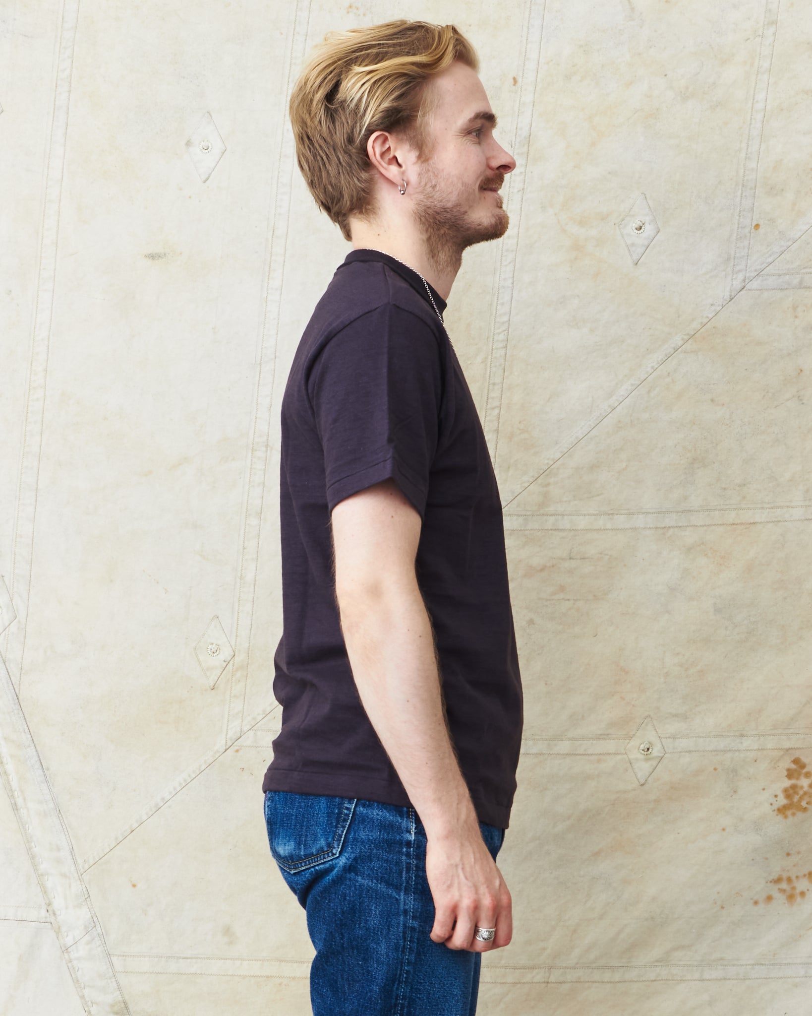 These t-shirts are knitted in Japan using vintage circular knitting machines that give the fabric a slubby and sturdy texture, just like a vintage t-shirt.