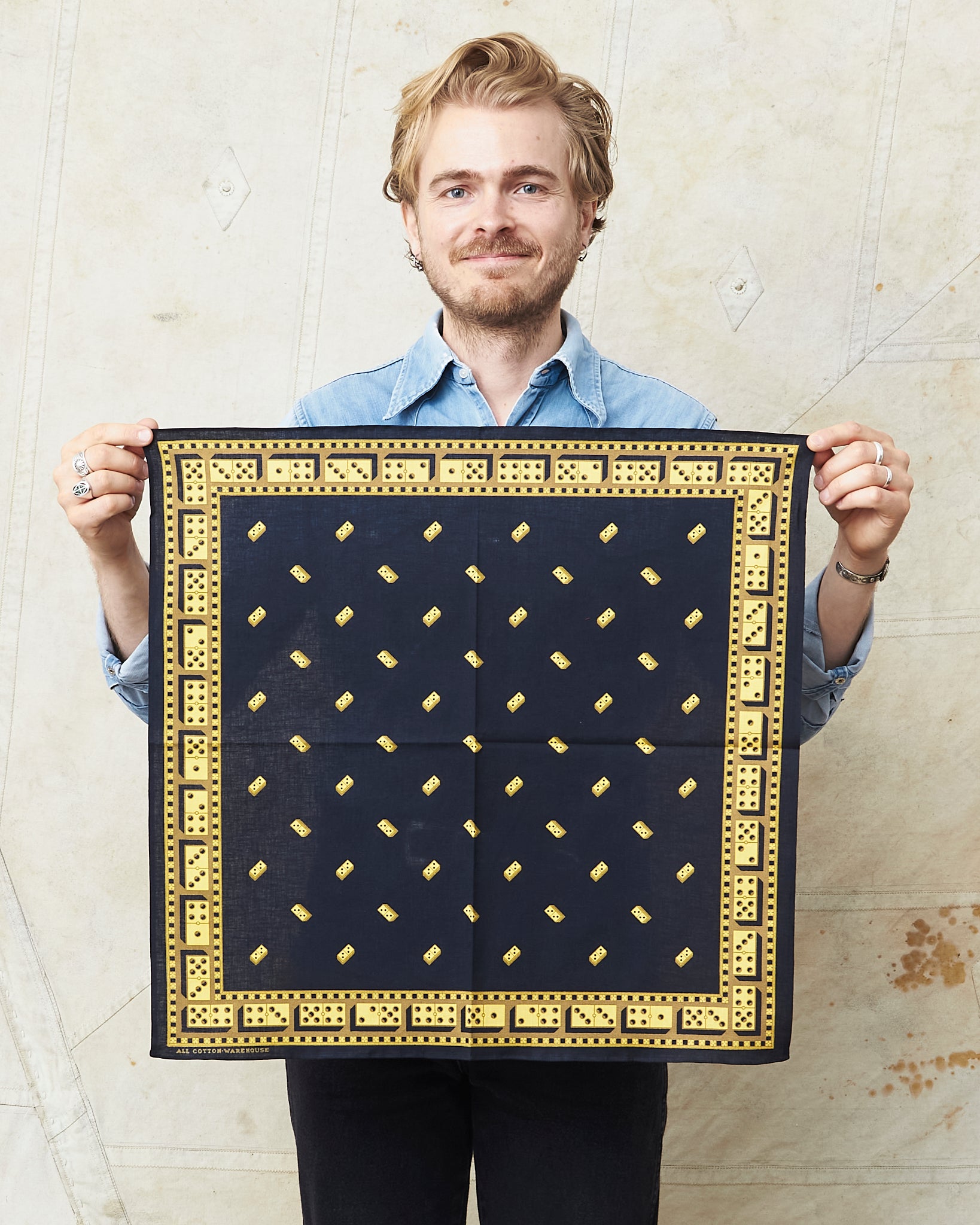 - Warehouse & Co Lot 5241 Selvedge Bandana Domino Pattern Black