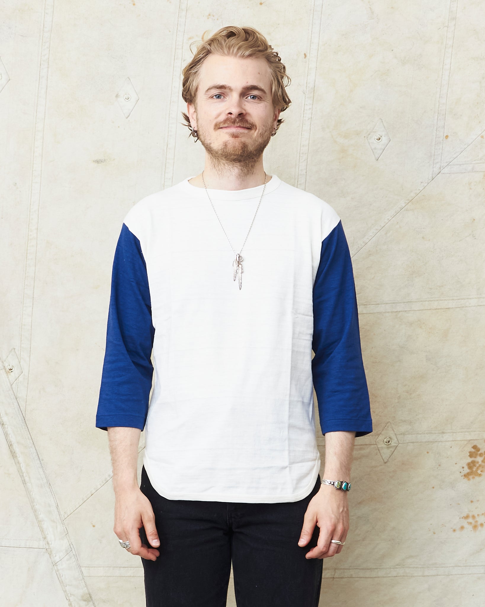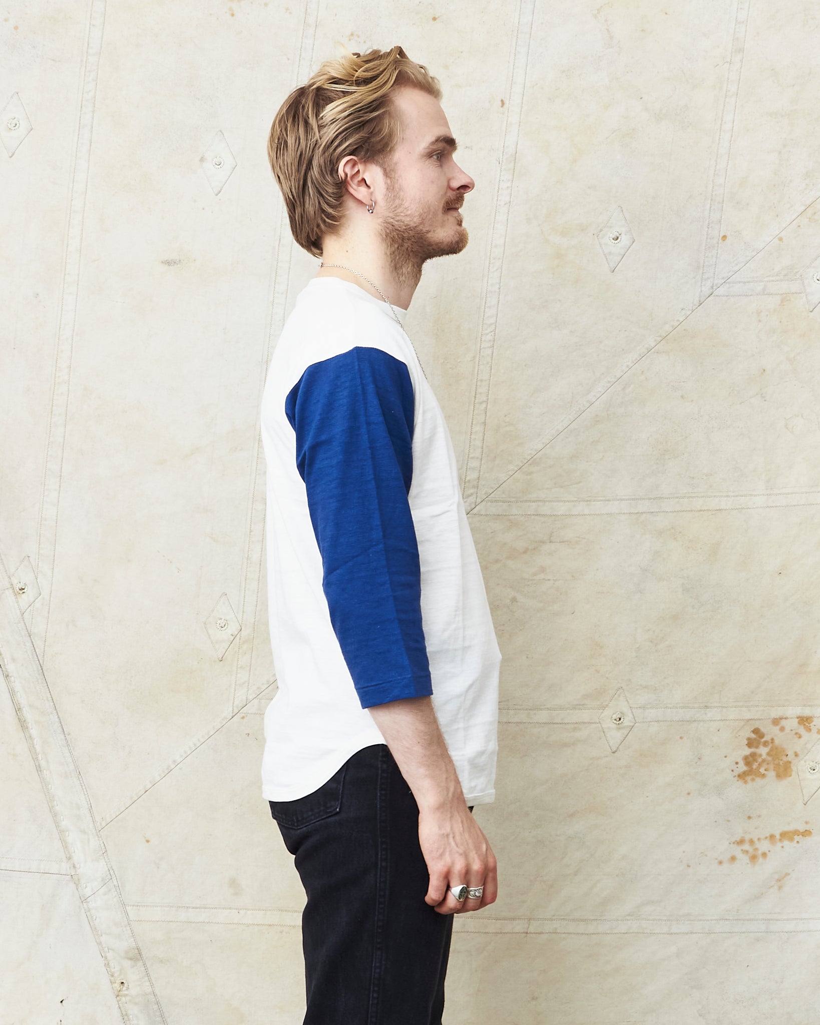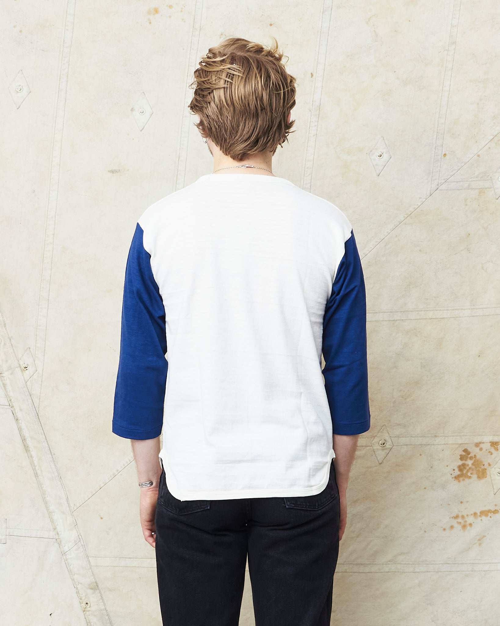 This shirt is inspired by vintage baseball t-shirts with a wide fit and a three-quarter sleeve. Knitted in Japan on a vintage circular knitting machine witch gives the shirt the look and the feeling of an original vintage garment.