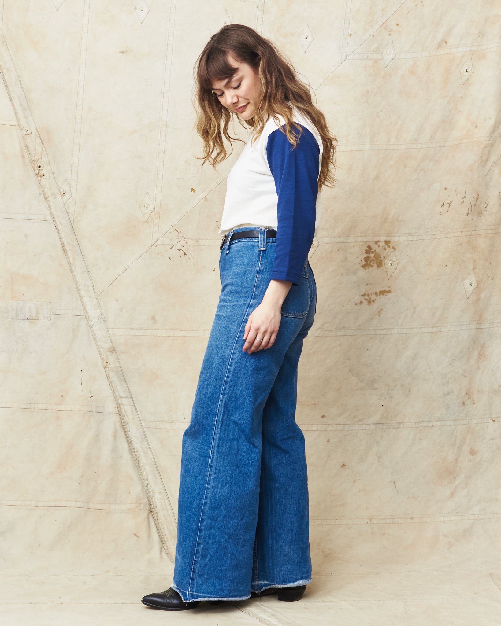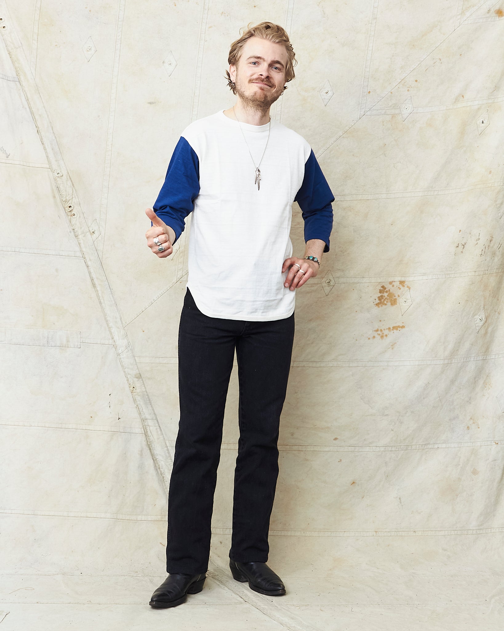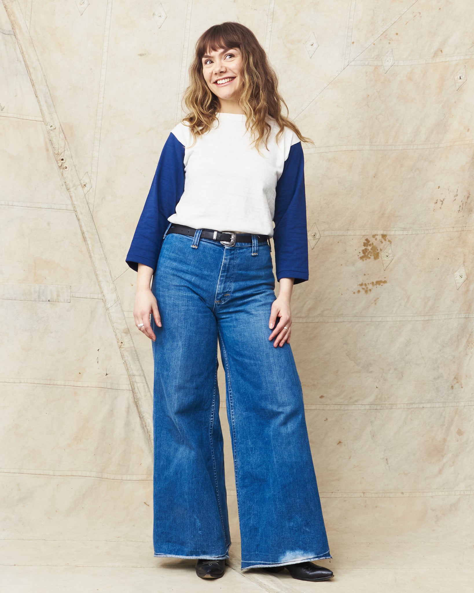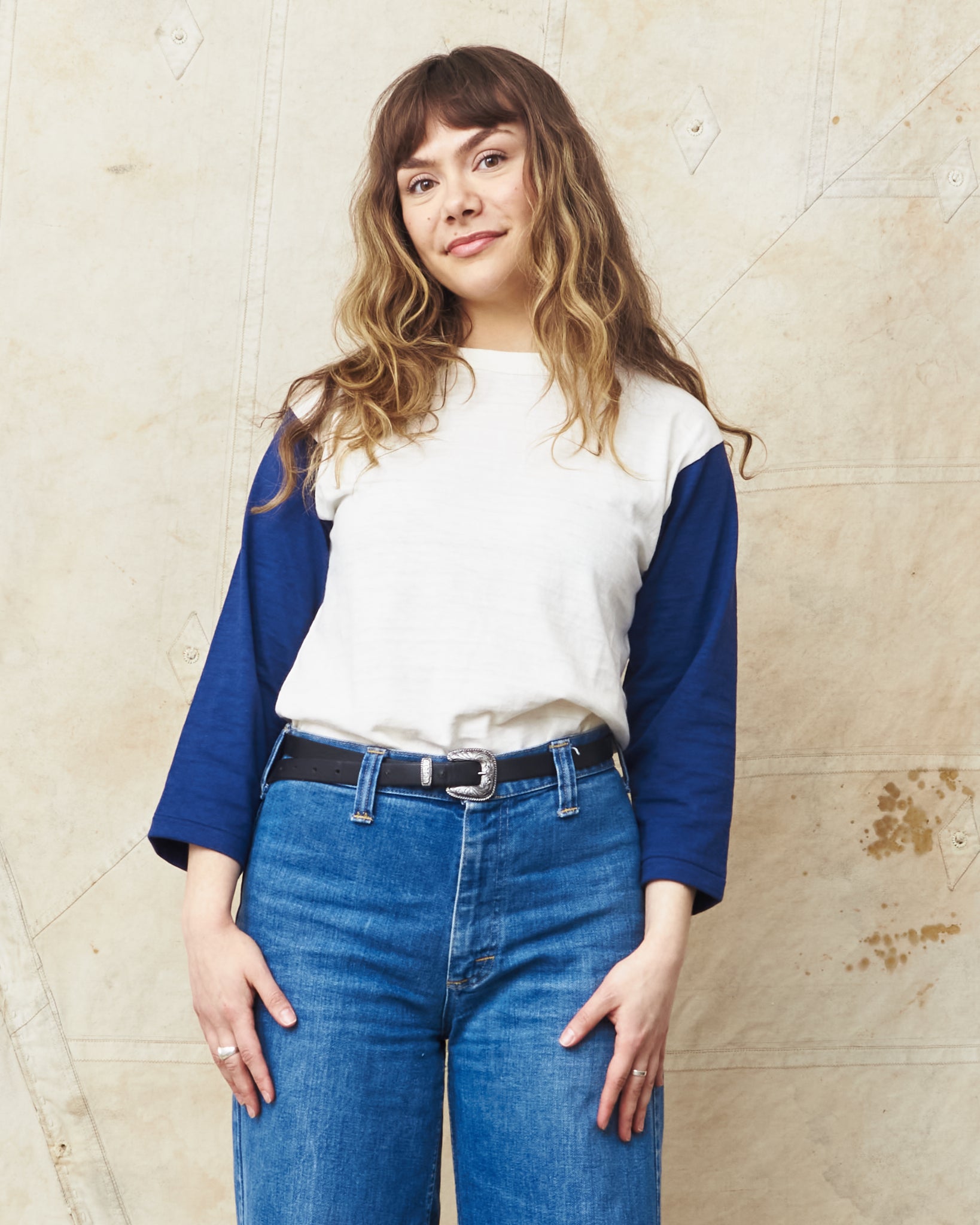 This shirt is inspired by vintage baseball t-shirts with a wide fit and a three-quarter sleeve. Knitted in Japan on a vintage circular knitting machine witch gives the shirt the look and the feeling of an original vintage garment.