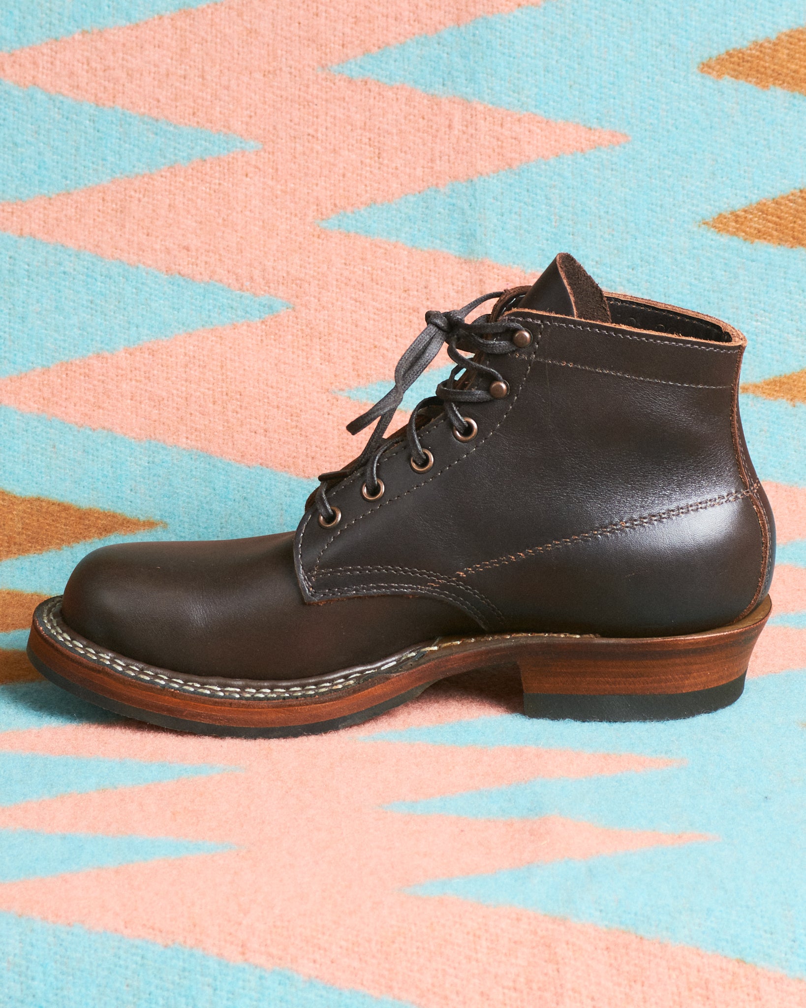 Just as in the 1930's, these boots are made without the use of synthetic materials. They are hand welted, a technique that is considered one of the finest in shoe making. For this technique the shoemakers at White's use a thick "Irish Linen" thread to welt the uppers. In addition, instead of using a steel shank, White's makes use of a stacked leather shank, creating the distinct "bellowed waist" shape on the underside of the outsole.
