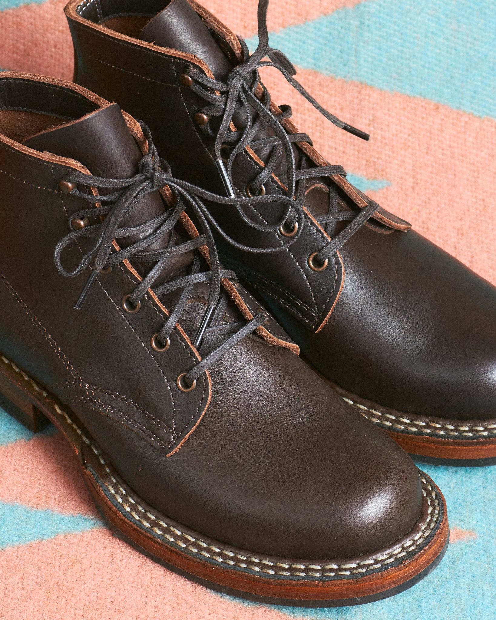 - Double row hand-welted stitchdown construction