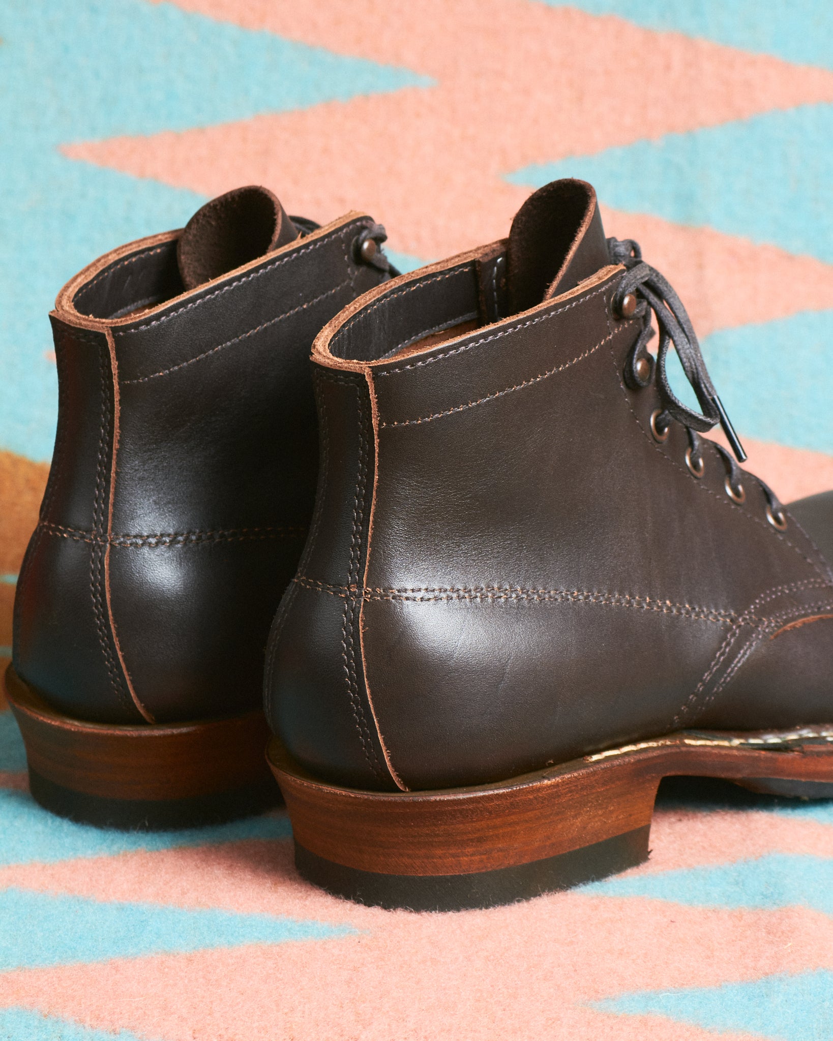 Since White's production is small-scale, every order placed there can be customized. On these boots we chose to go with a brown leather for the upper known for it's ability to easily take a shine. A cuban heel helps in reducing heel wear. We have chosen a leather sole with oil-resistant Vibram 700 rubber half soles for the outsole, since we think it's best suitable for a Swedish climate whilst maintaining it's ability to be easily replaced.