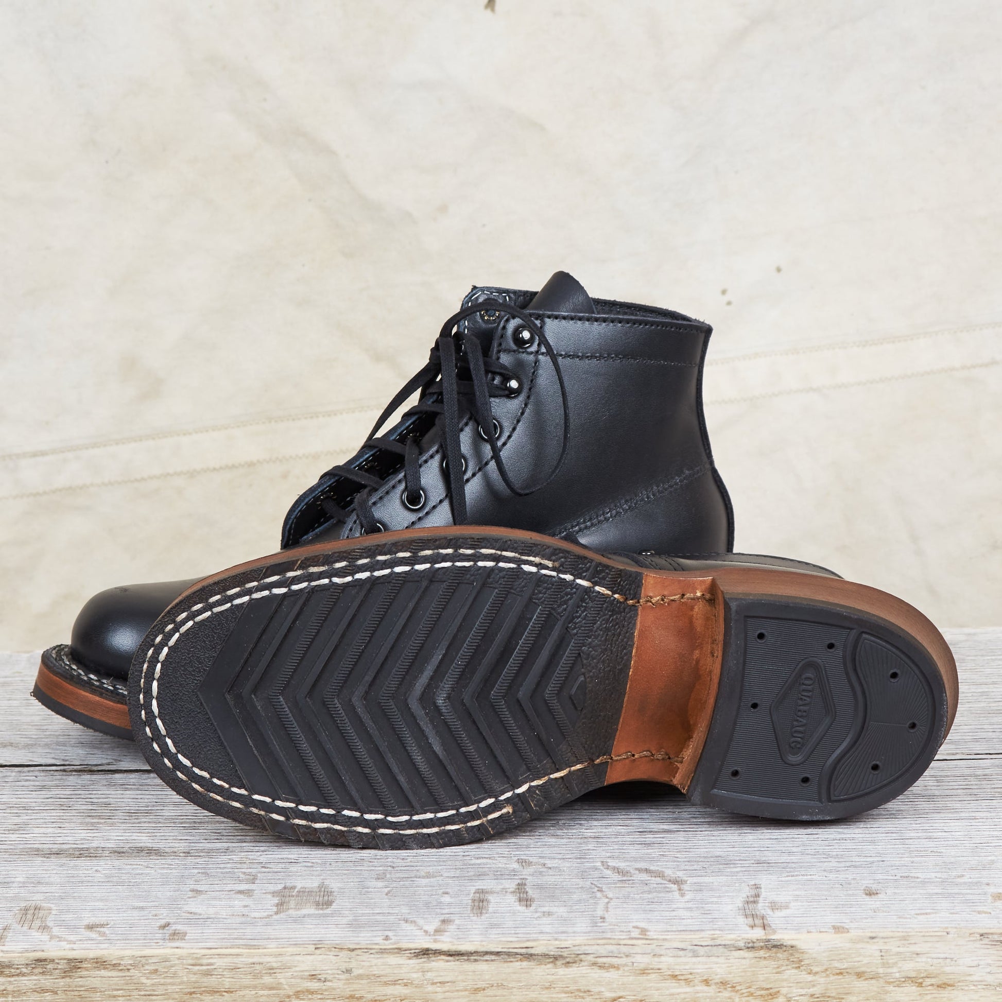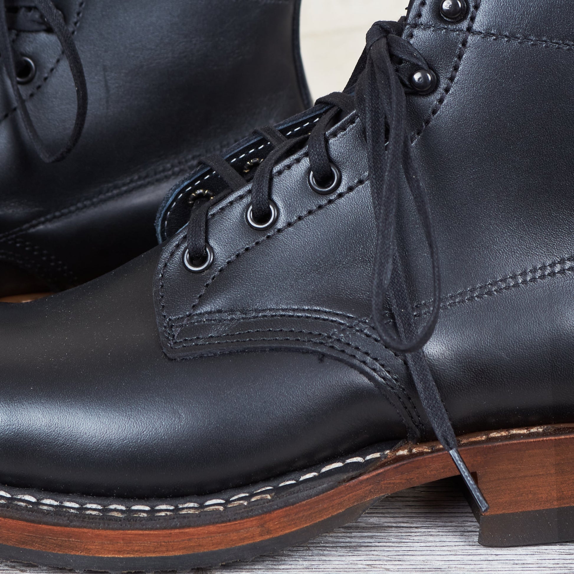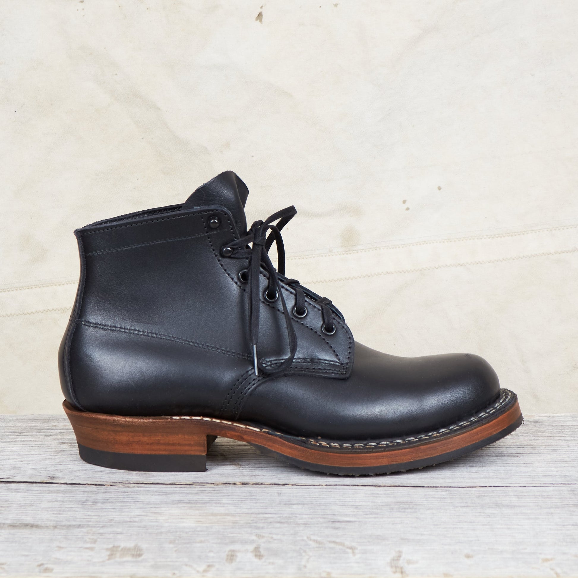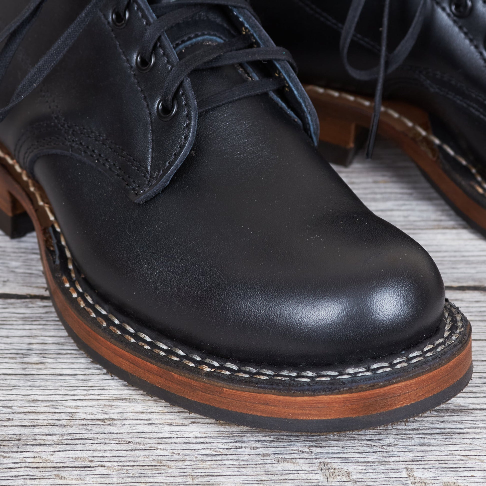 Since White's production is small-scale, every order placed there can be customized. On these boots we chose to go with a black dress leather for the upper known for it's ability to easily take a shine. A cuban heel helps in reducing heel wear. We have chosen a leather sole with oil-resistant Vibram 700 rubber half soles for the outsole, since we think it's best suitable for a Swedish climate whilst maintaining it's ability to be easily replaced.