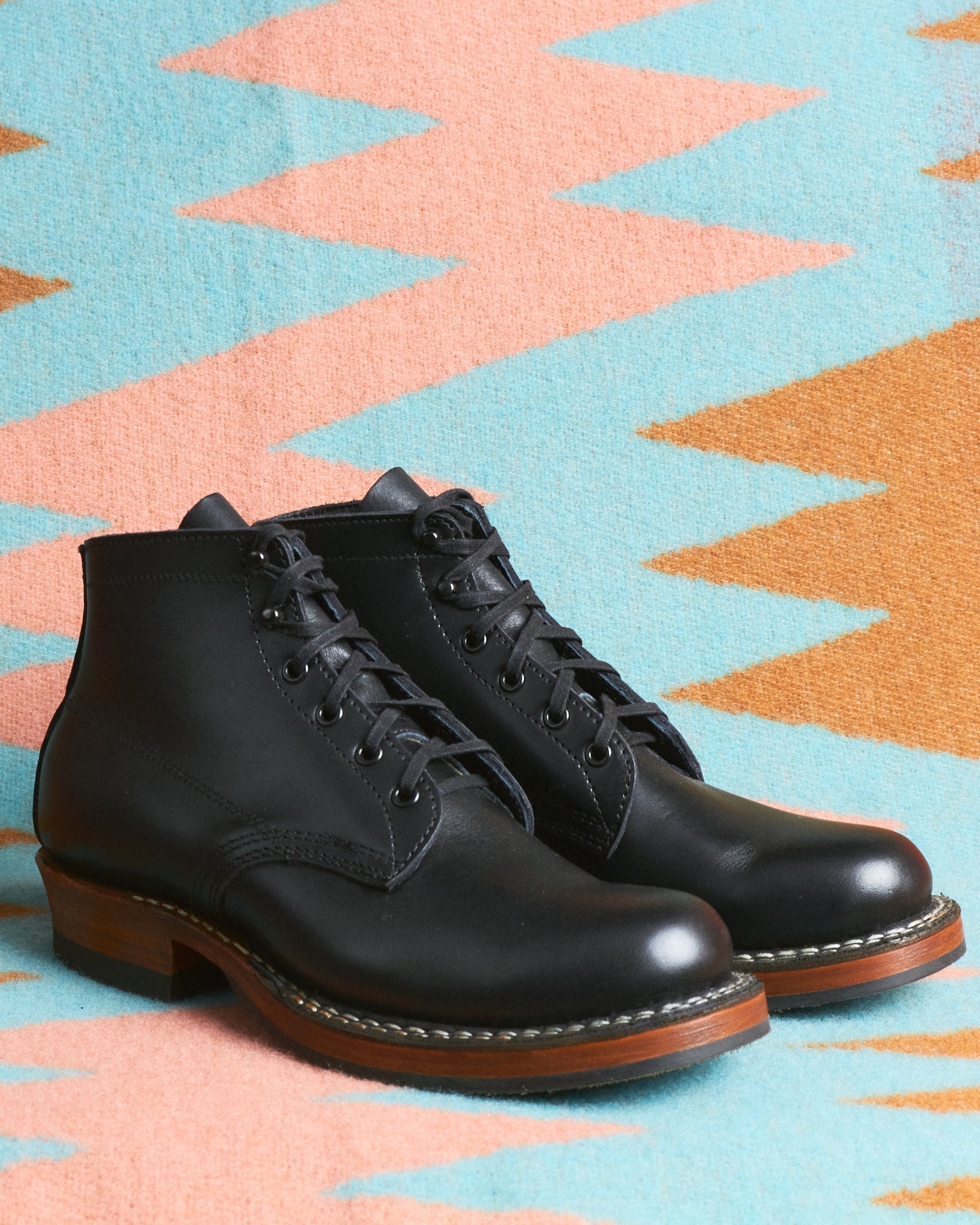 - Double row hand-welted stitchdown construction