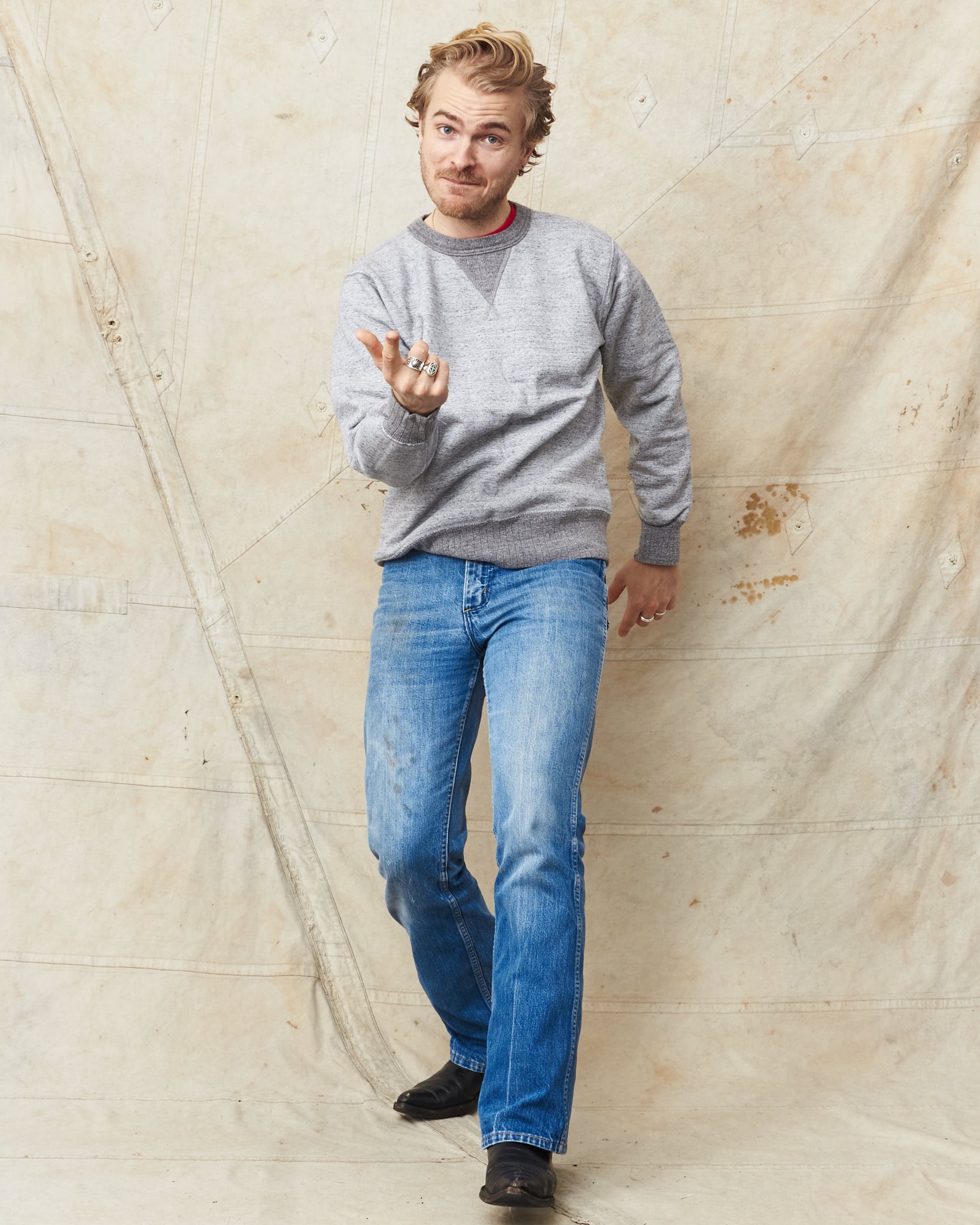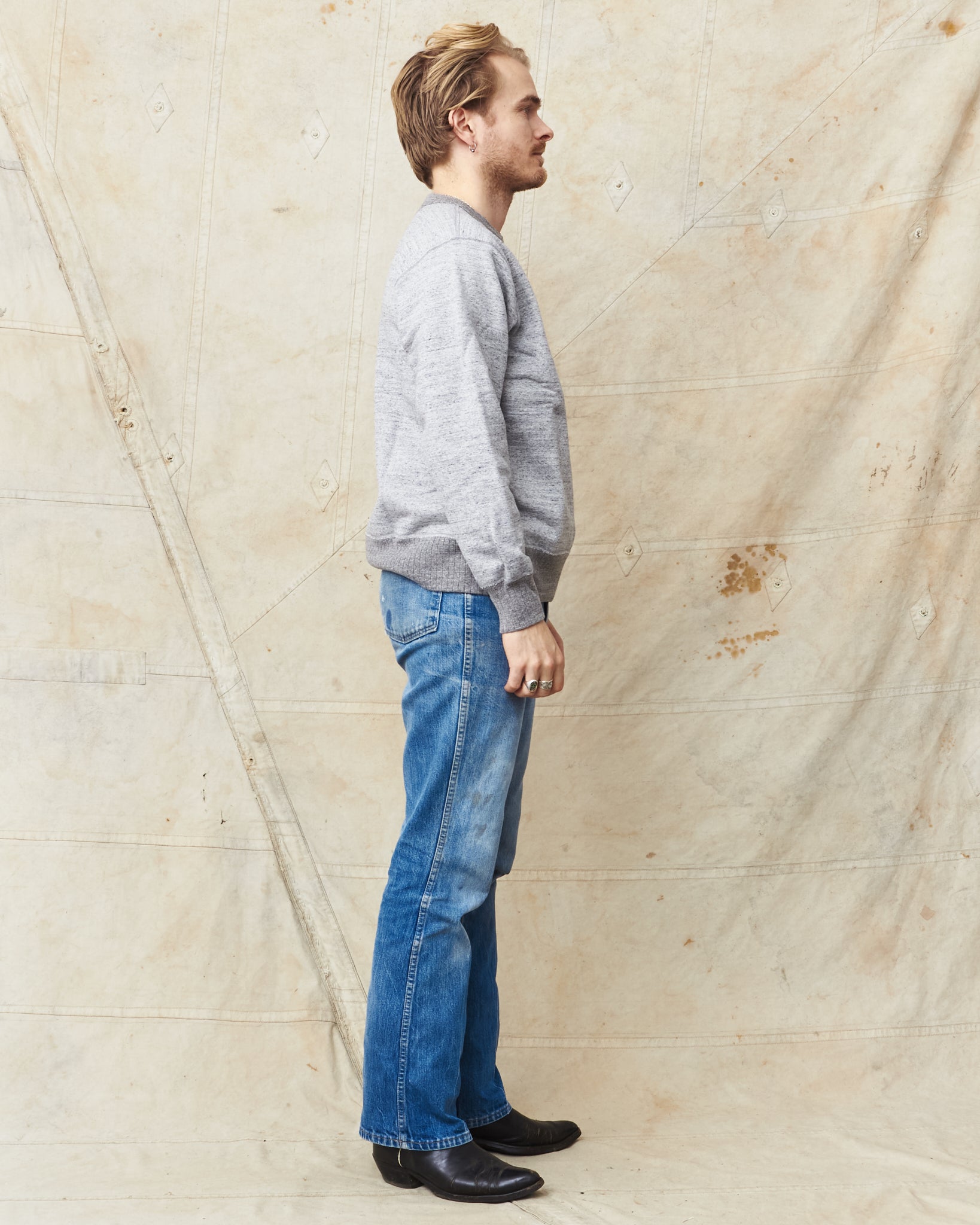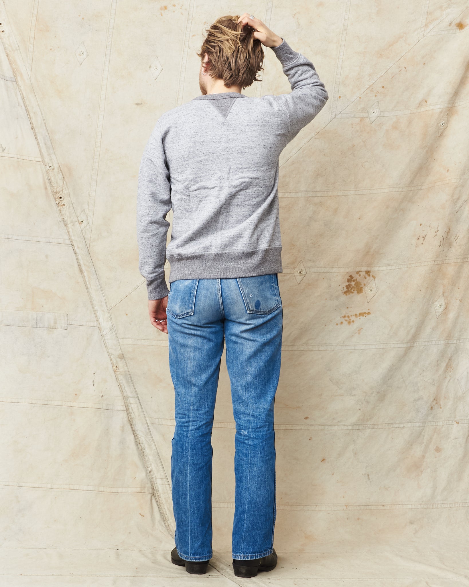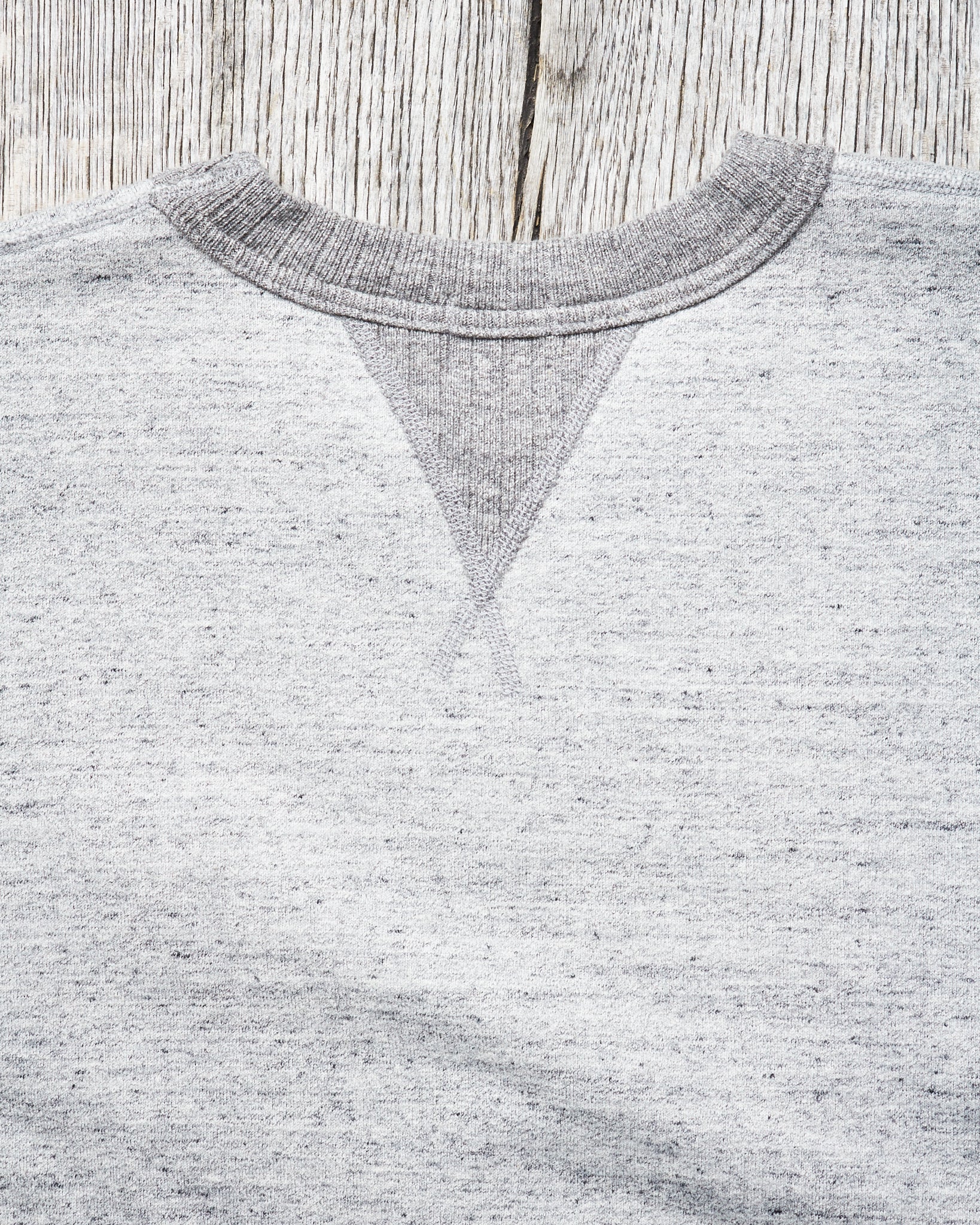 If you are looking for a perfect high quality sweatshirt which has been carefully reproduced in the same style and quality as sweaters from the middle of the last century this sweatshirt might be just what you are looking for. To succeed in this Whitesville have knitted these on original 4-needle 1920's vintage loopwheel machines in Japan. The facility that makes these knits is one of the last ones in the world to maintain and keep these looms in working order. 4-Needle looms are special machines that are able to knit a perfect tube, but they can only knit a set diameter. In other words, one loom for each size is required and this is why one hardly ever sees perfect tube construction in modern day garments. This special way of sewing allows to create sweatshirts without side seams, a technique that ensures that the true shape of the garment is maintained not only during its construction but also during its life of wear.