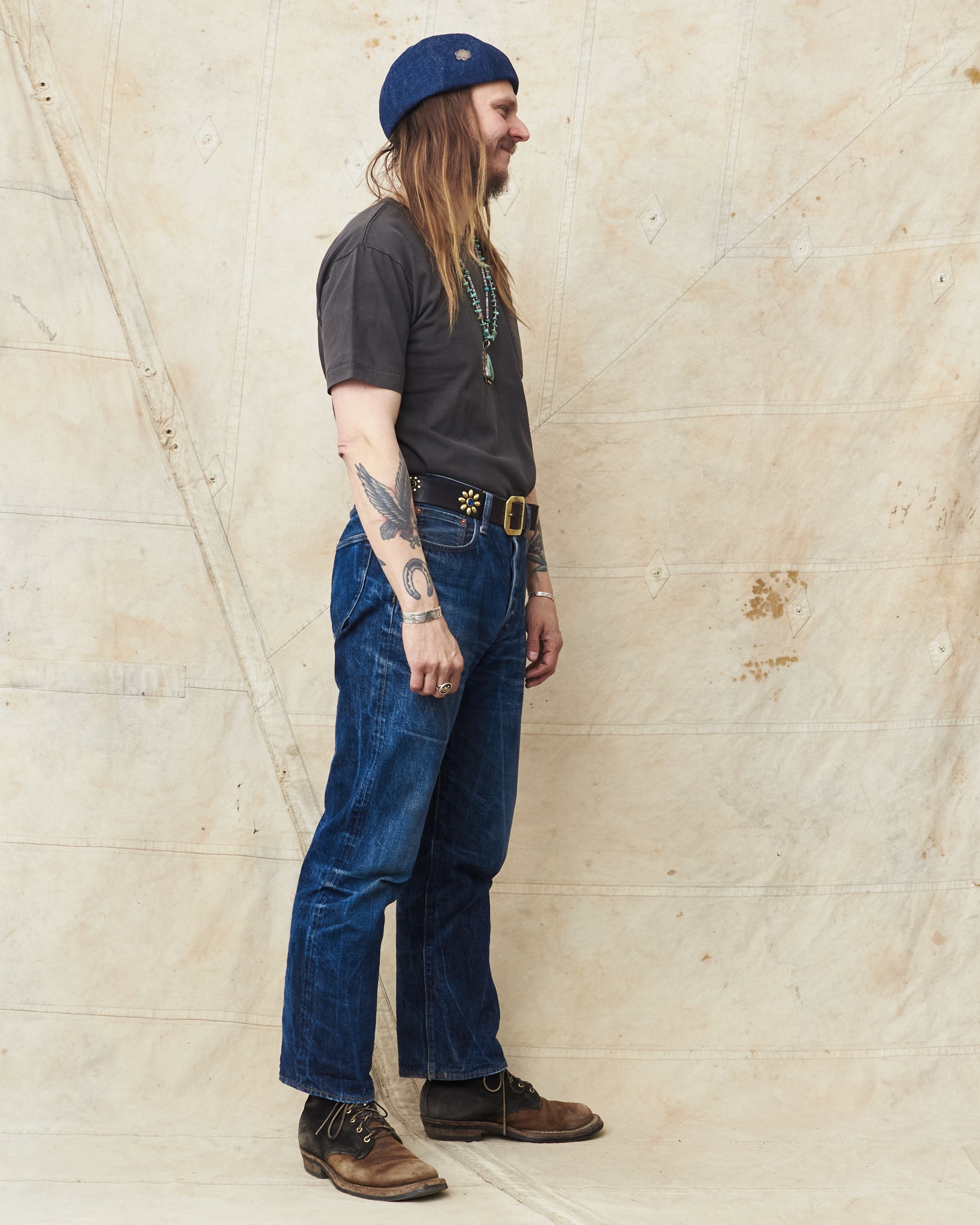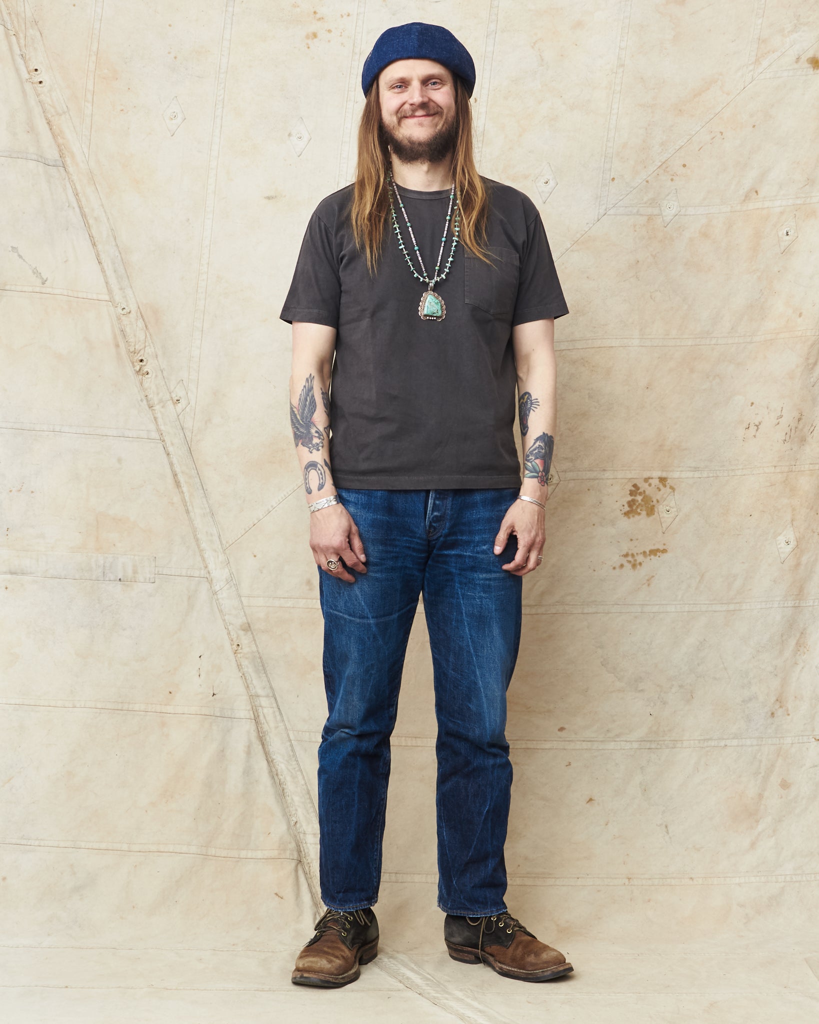 The pigment dyed process gives these t-shirts a unique texture and unevenness reminiscent of vintage clothing. It looks like a loved and worn t-shirt from start but with time it will age and fade to perfection leaving traces of your everyday life.