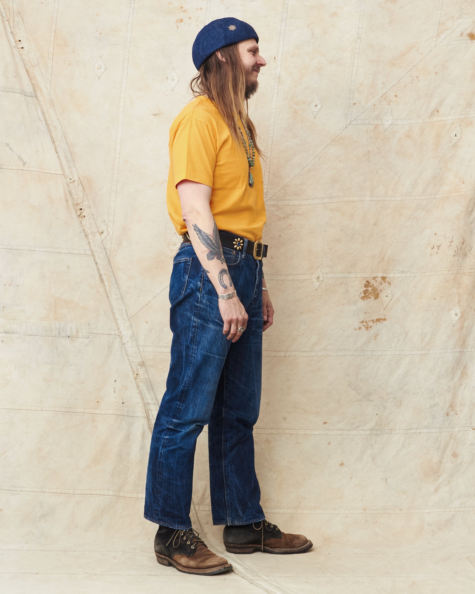 The pigment dyed process gives these t-shirts a unique texture and unevenness reminiscent of vintage clothing. It looks like a loved and worn t-shirt from start but with time it will age and fade to perfection leaving traces of your everyday life.